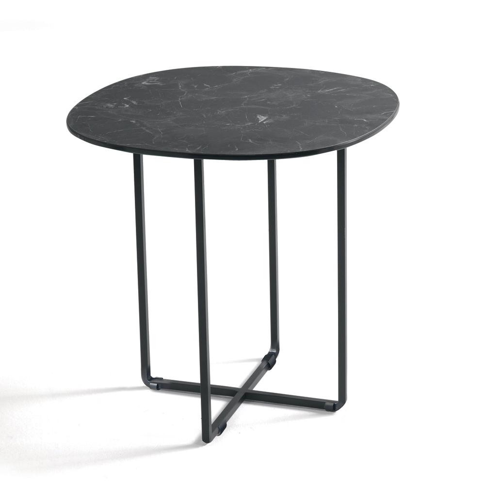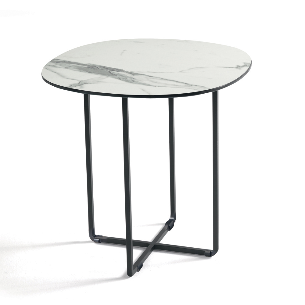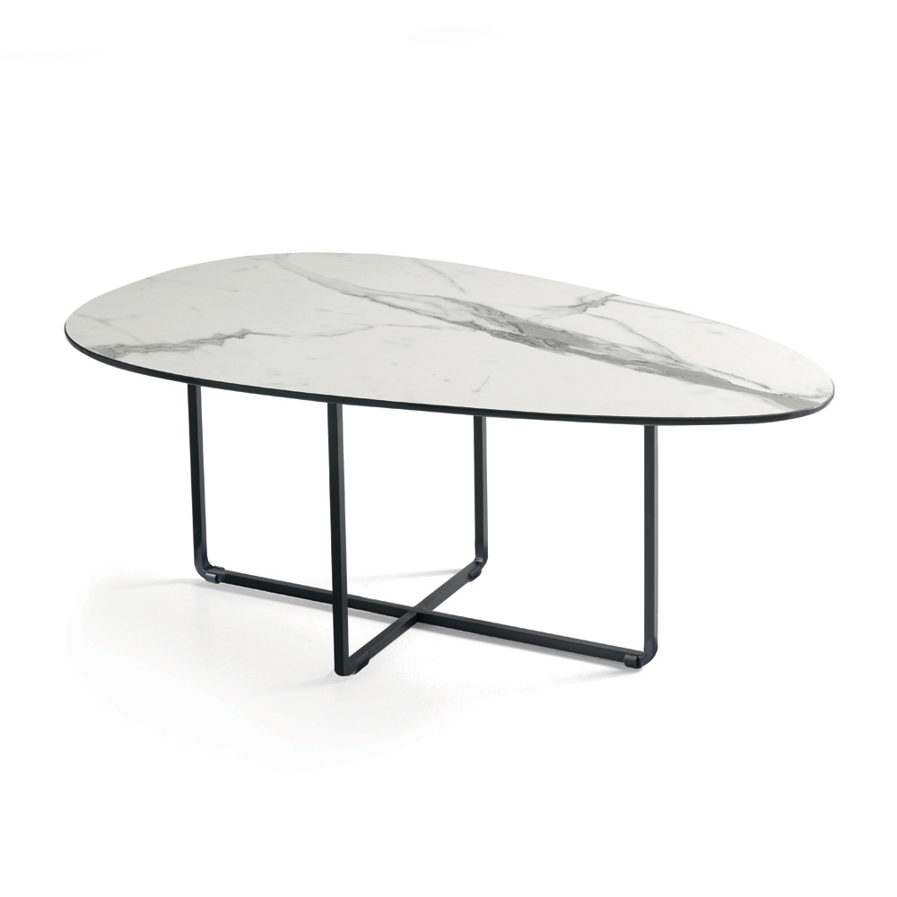 Stelaż wykonany jest z malowanego metalu , solidnego, a jednocześnie wizualnie lekkiego, dzięki czemu harmonijnie wpasowuje się w nowoczesne wnętrza. Czyste, harmonijne kształty nadają stołowi elegancki i ponadczasowy wygląd, idealny do różnorodnych aranżacji.