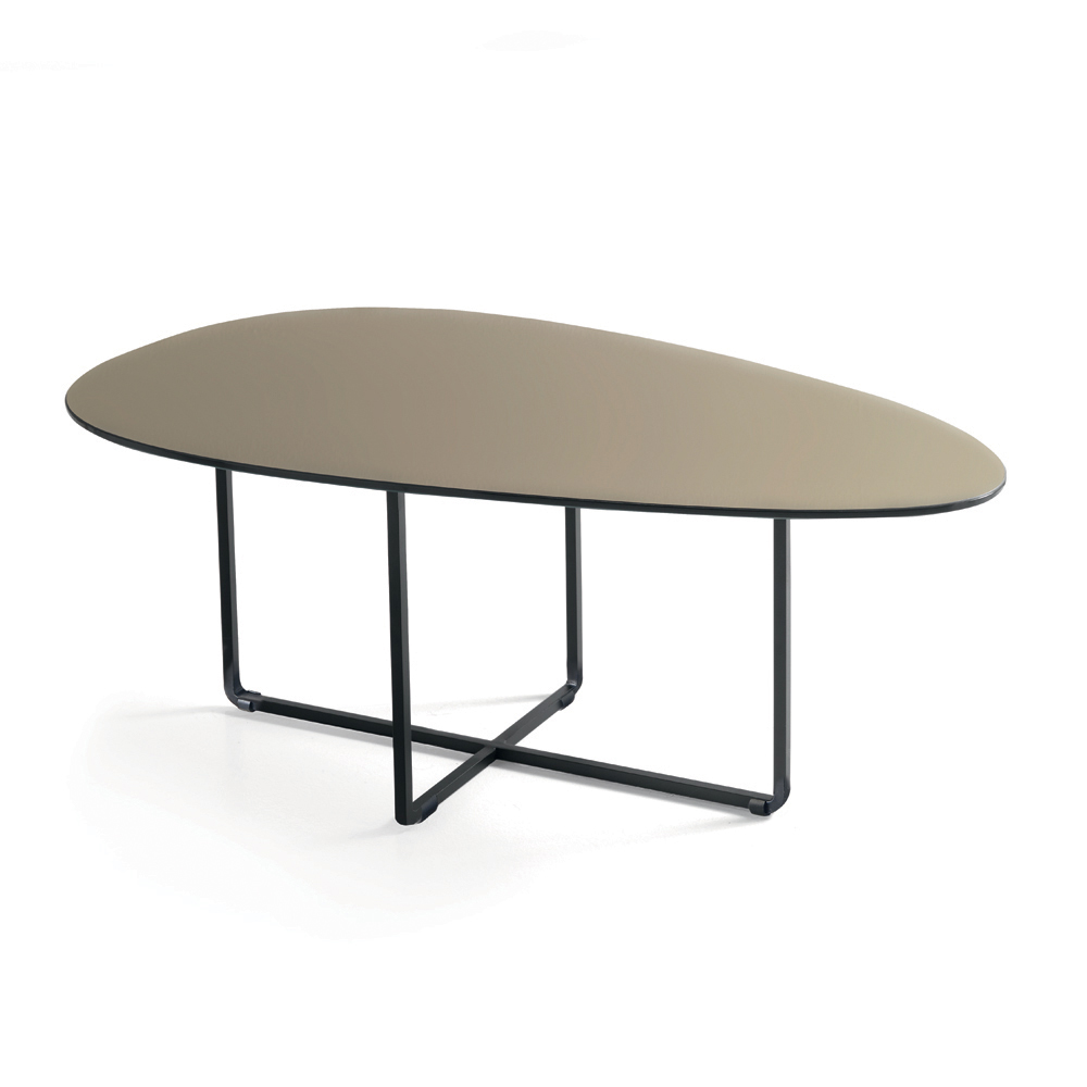 Blat dostępny jest w wersji ze szkła lustrzanego , które potęguje jasność pomieszczenia, lub z ceramiki imitującej marmur, nałożonej na szkło – rozwiązanie łączące trwałość z estetyką. Ta podwójna opcja pozwala na dopasowanie stołu do stylu pomieszczenia.
