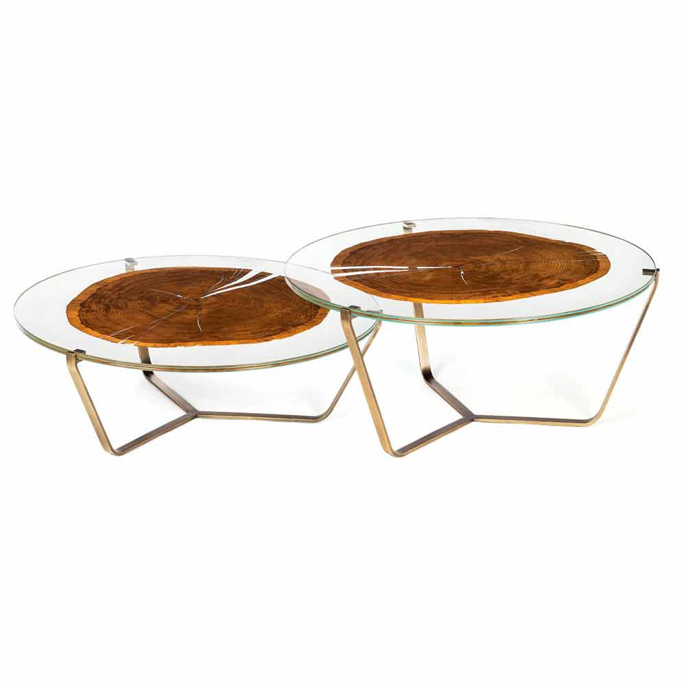 Okrągły stolik kawowy ze szkła i drewna wyprodukowany we Włoszech, w porządku.