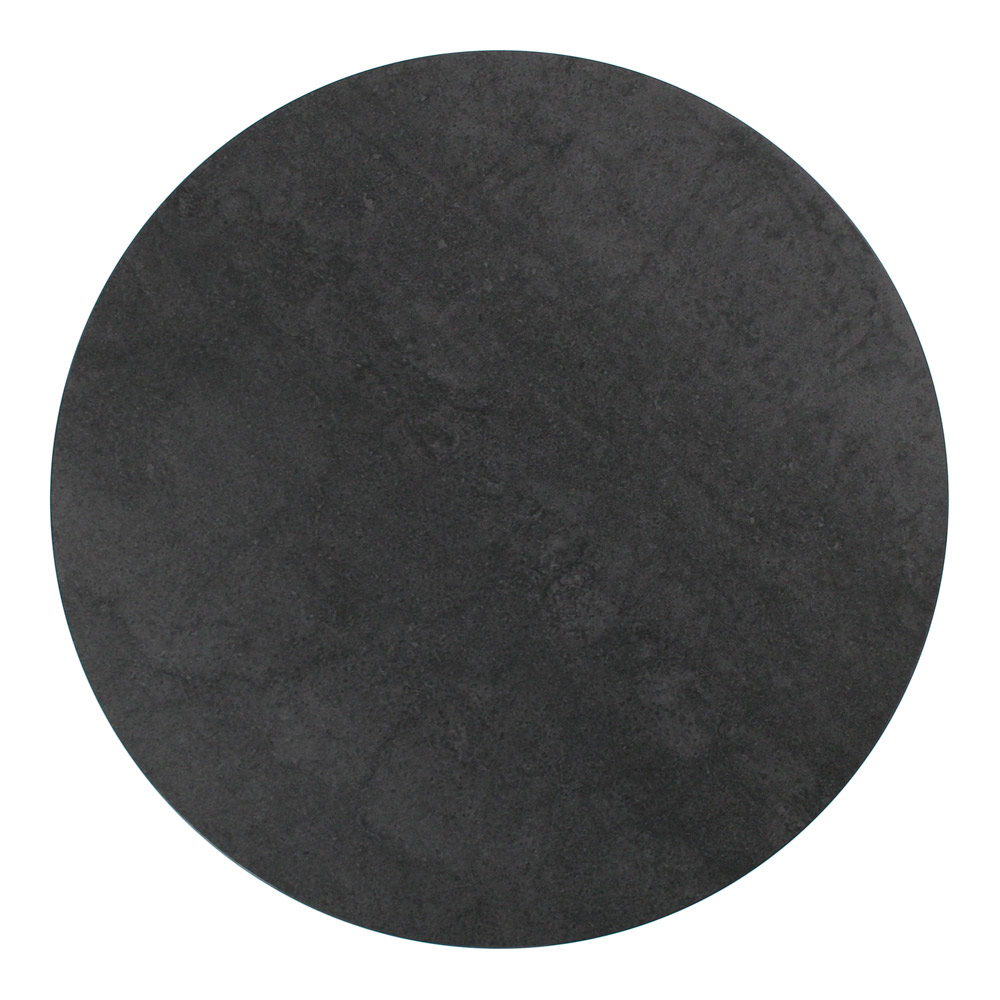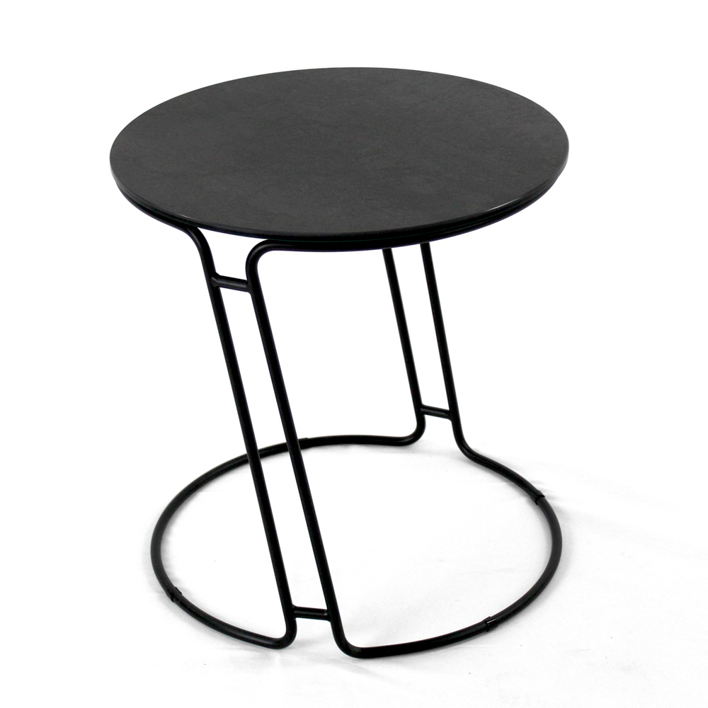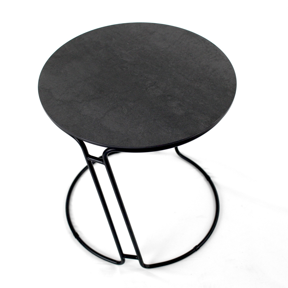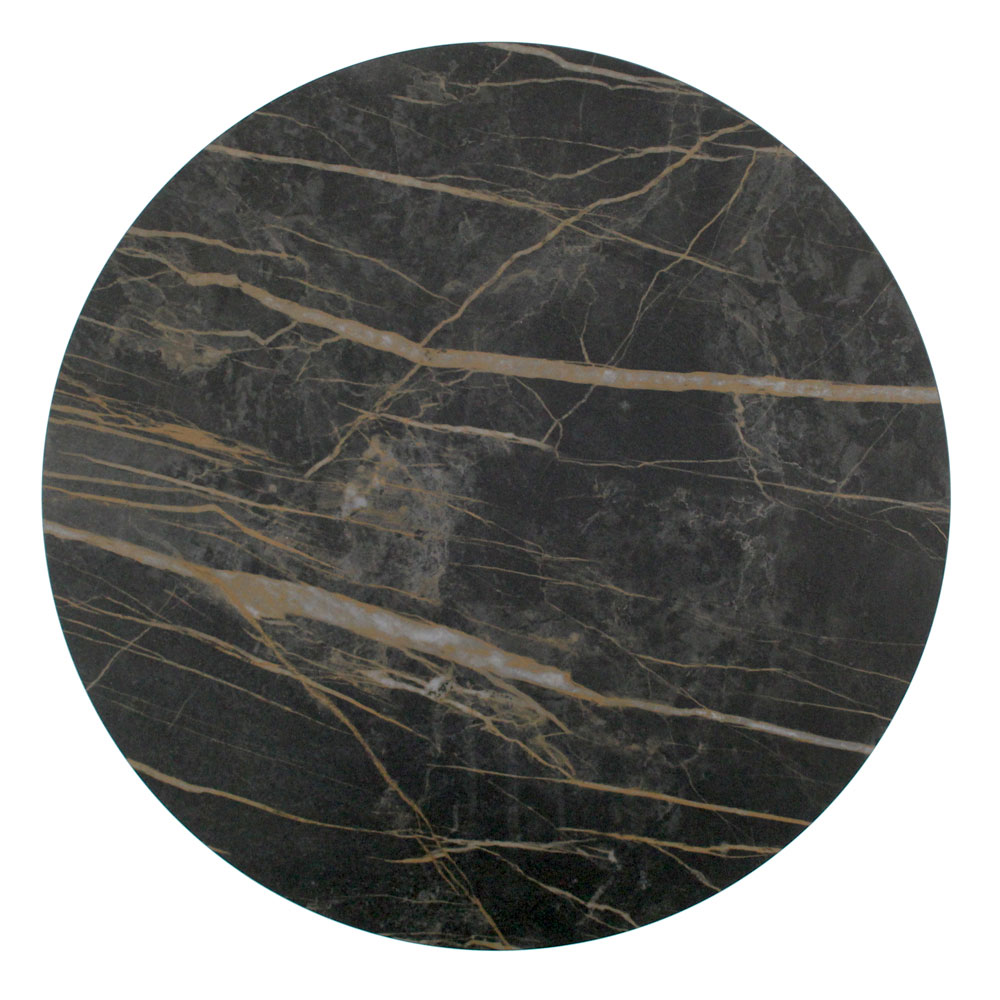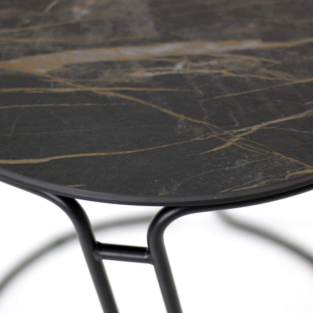 Okrągły stolik kawowy z malowaną stalową podstawą i blat z kamionki porcelanowej.