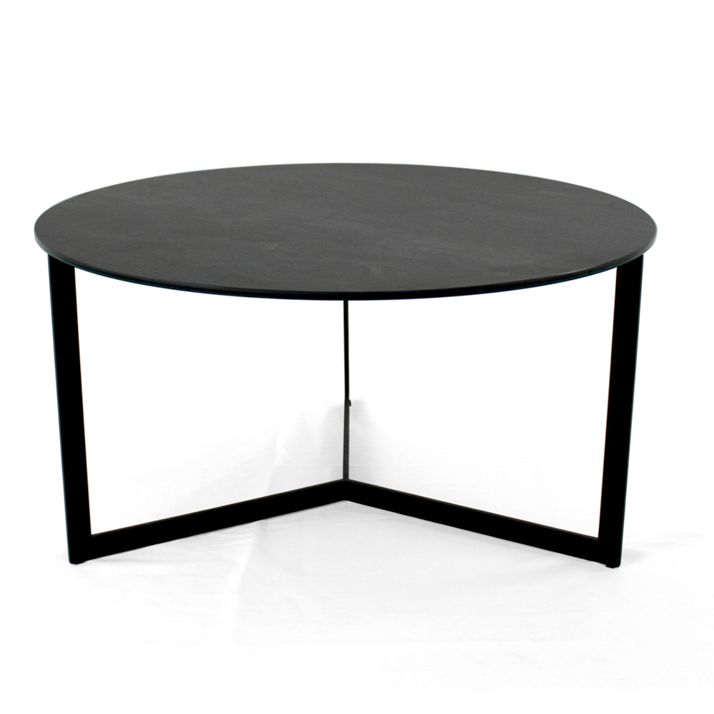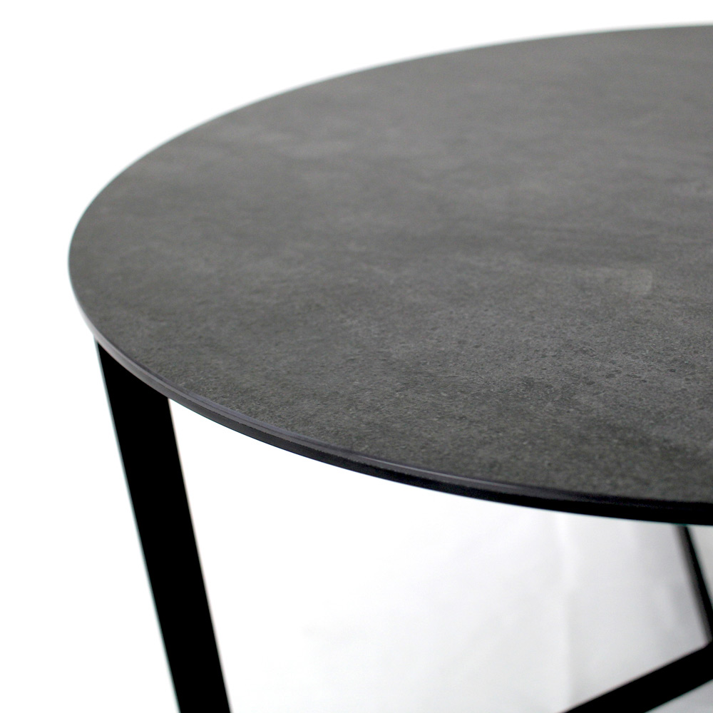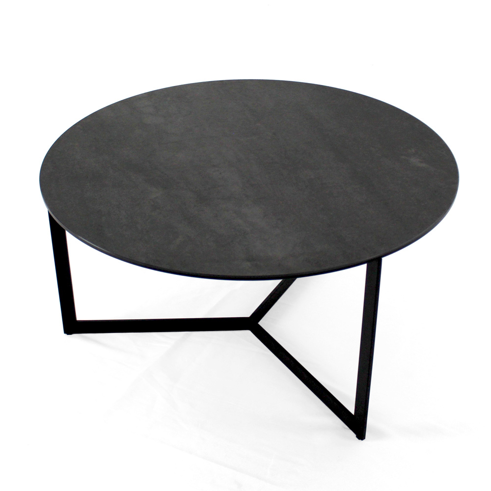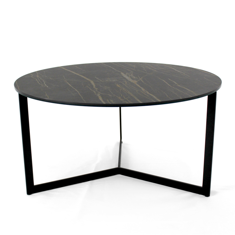 Okrągły stolik kawowy z podstawą z malowanej stali i blatem z gresu porcelanowego