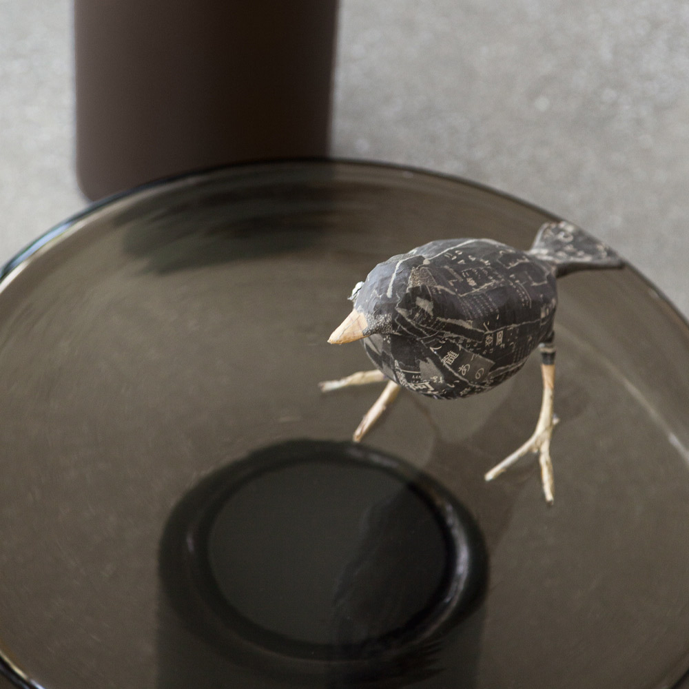 - Blat z przezroczystego, dymionego szkła balonowego, podstawa z wytłaczanego grafitu