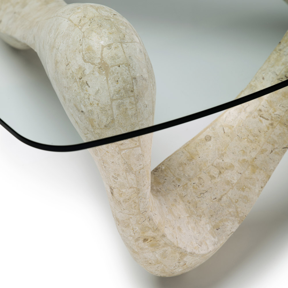 Stolik kawowy California pokazuje umiejętności doświadczonych rzemieślników w obróbce kamieniakopalnego w celu nadania mu najróżniejszych kształtów.