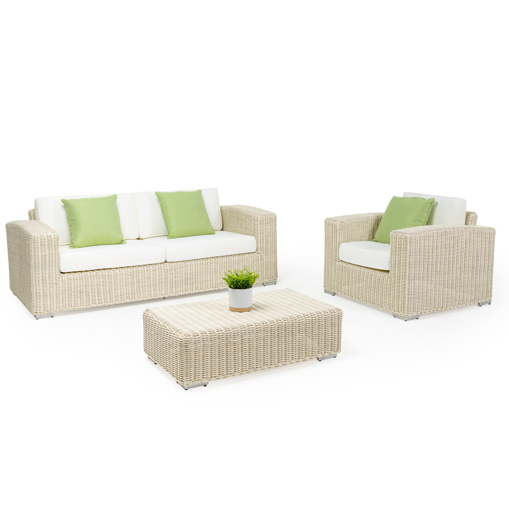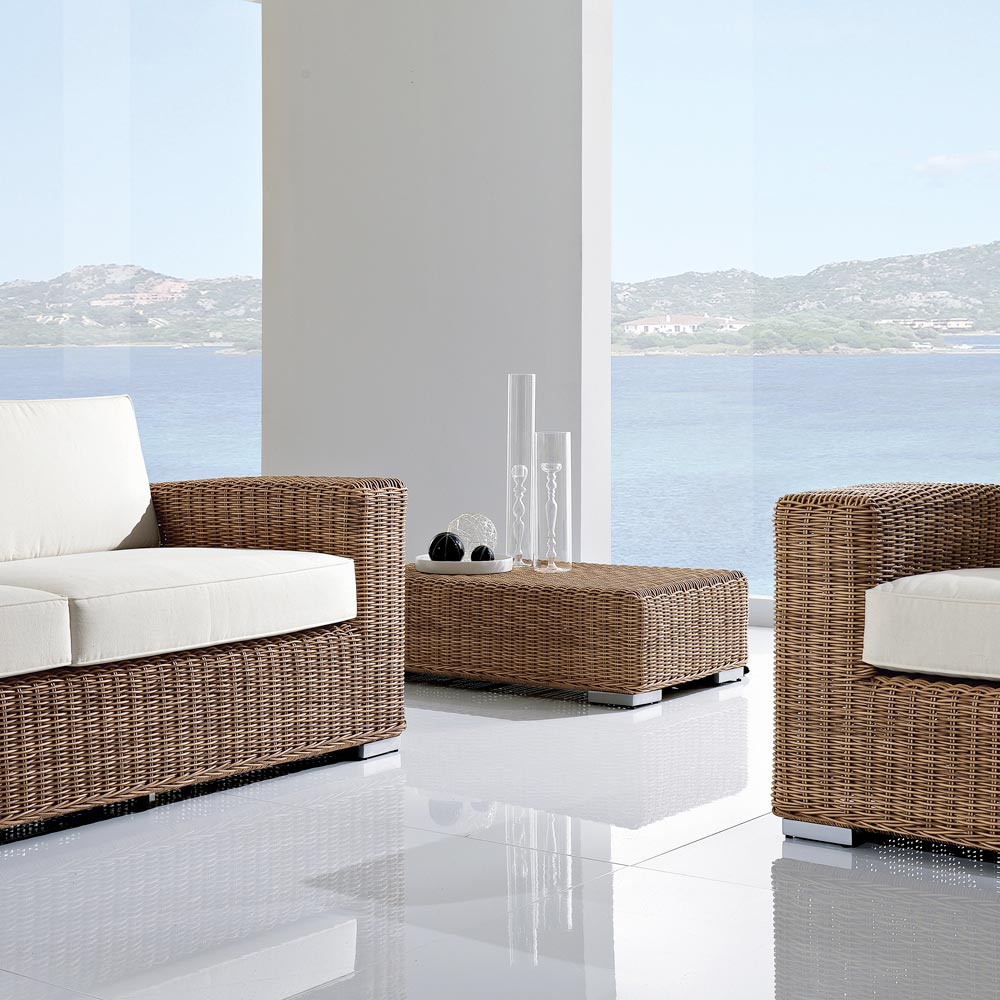 wyrafinowany styl, bardzo wysoka jakość materiałów i jego faliste kształty sprawiają, że idealnie nadaje się do umeblowania wnętrz i na zewnątrz. Dzięki zastosowaniu specjalnych wysokiej jakości materiałów, ten stół ogrodowy nie boi się złej pogody i zmian temperatury dzięki certyfikacji tkanego włókna. Duże siedzisko może wygodnie pomieścić do 3 osób, w rzeczywistości jest idealne na chwile biesiadowania.