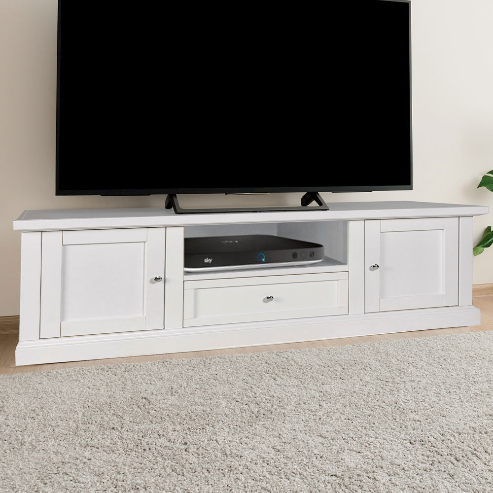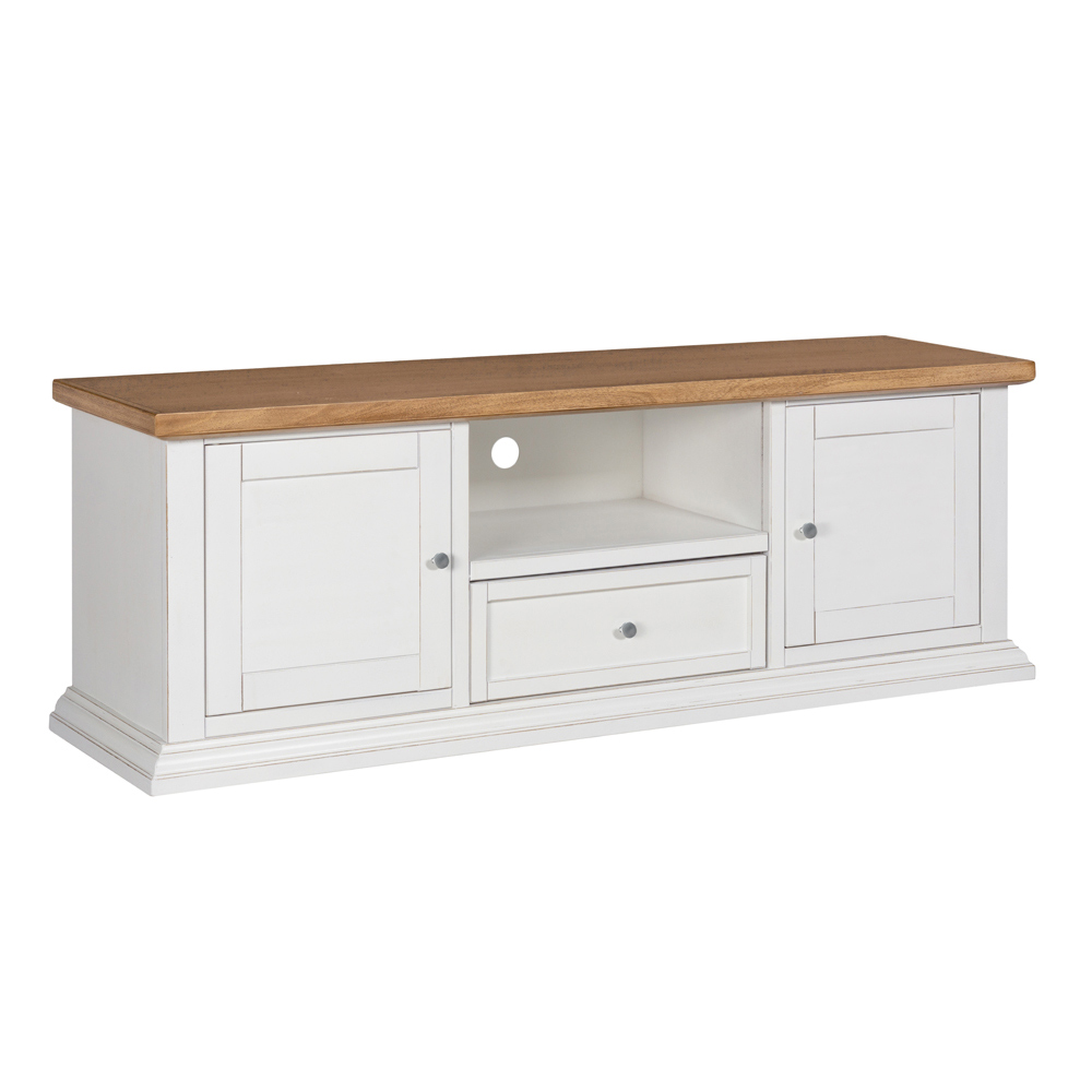 Wykonany we Włoszech drewniany stolik pod telewizor do salonu