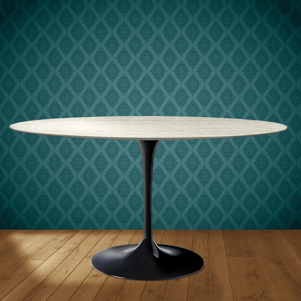 Stół jadalny z owalnym blatem z ceramiki Dekton Marmorio, o matowym efekcie marmuru trawertynowego i polerowanej aluminiowej podstawie, w całości wyprodukowany we Włoszech. Ten stół wyróżnia się dwiema cechami: owalnym kształtem i ceramiką Dekton Marmorio. Innowacyjny owalny kształt zyskuje coraz większą popularność w oryginalnych aranżacjach salonów i kuchni, doskonale uzupełniając nowoczesny i wyrafinowany styl.Złożona i wyrafinowana grafika oraz kolorystyka ceramiki Dekton Marmorio sprawiają, że pomieszczenie staje się ciepłe i przytulne, gwarantując funkcjonalność i jakość nawet z upływem lat. Ten stół jest idealny dla osób, które chcą nadać swojej przestrzeni niepowtarzalny i niezapomniany charakter.