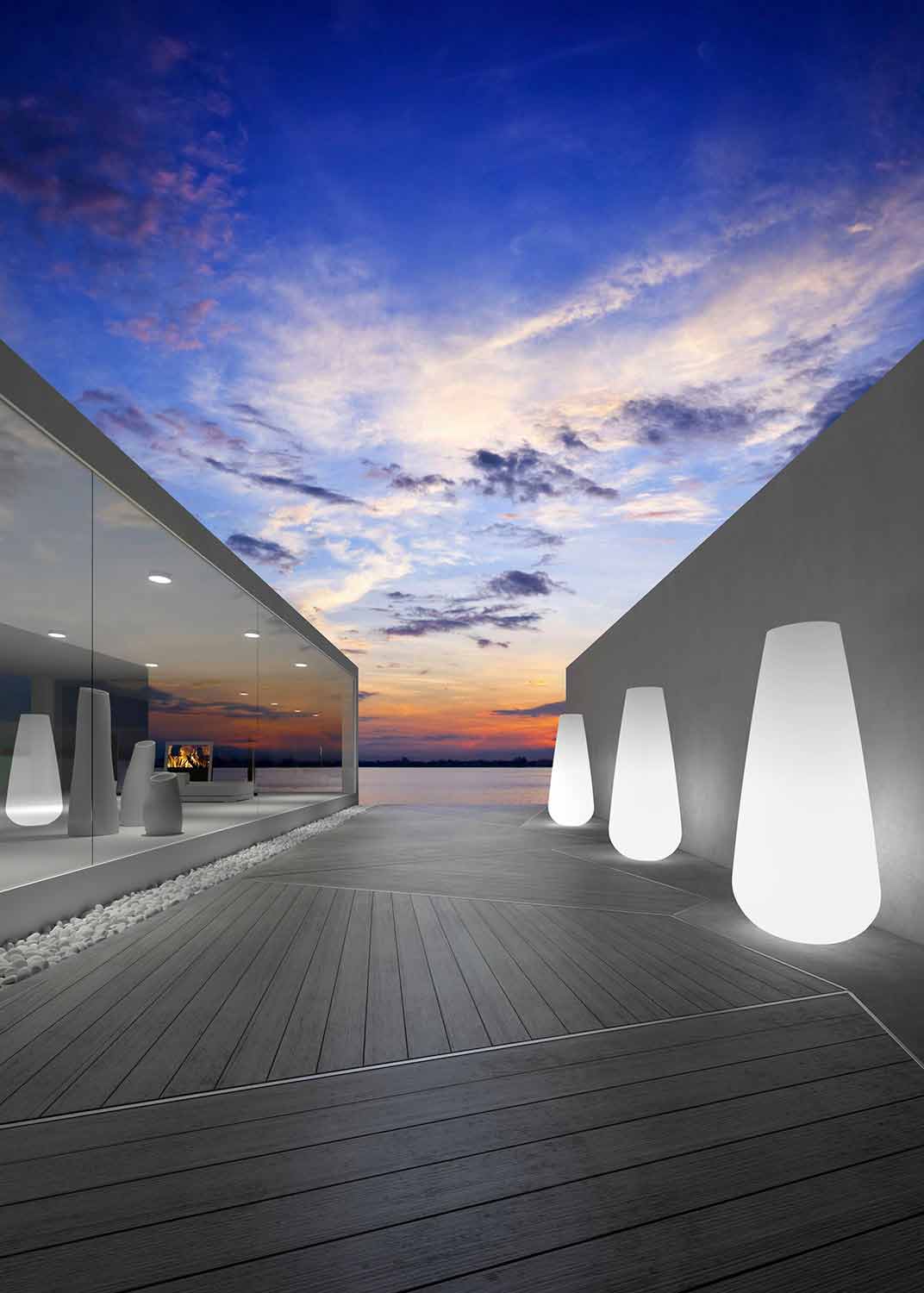 Duży dekoracyjny wazon z polietylenu do użytku na zewnątrz z oświetleniem LED Made in Italy.