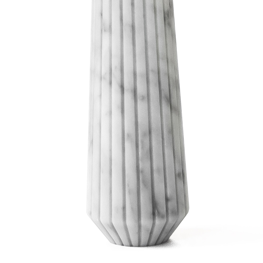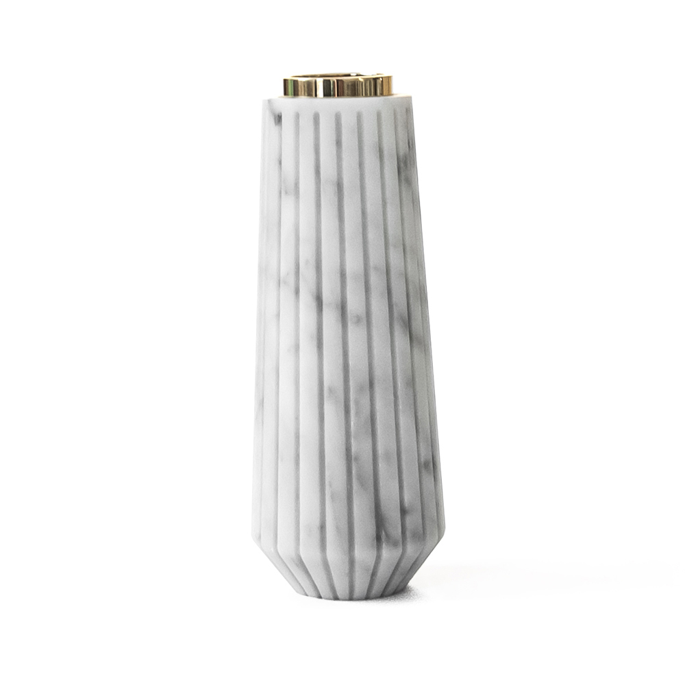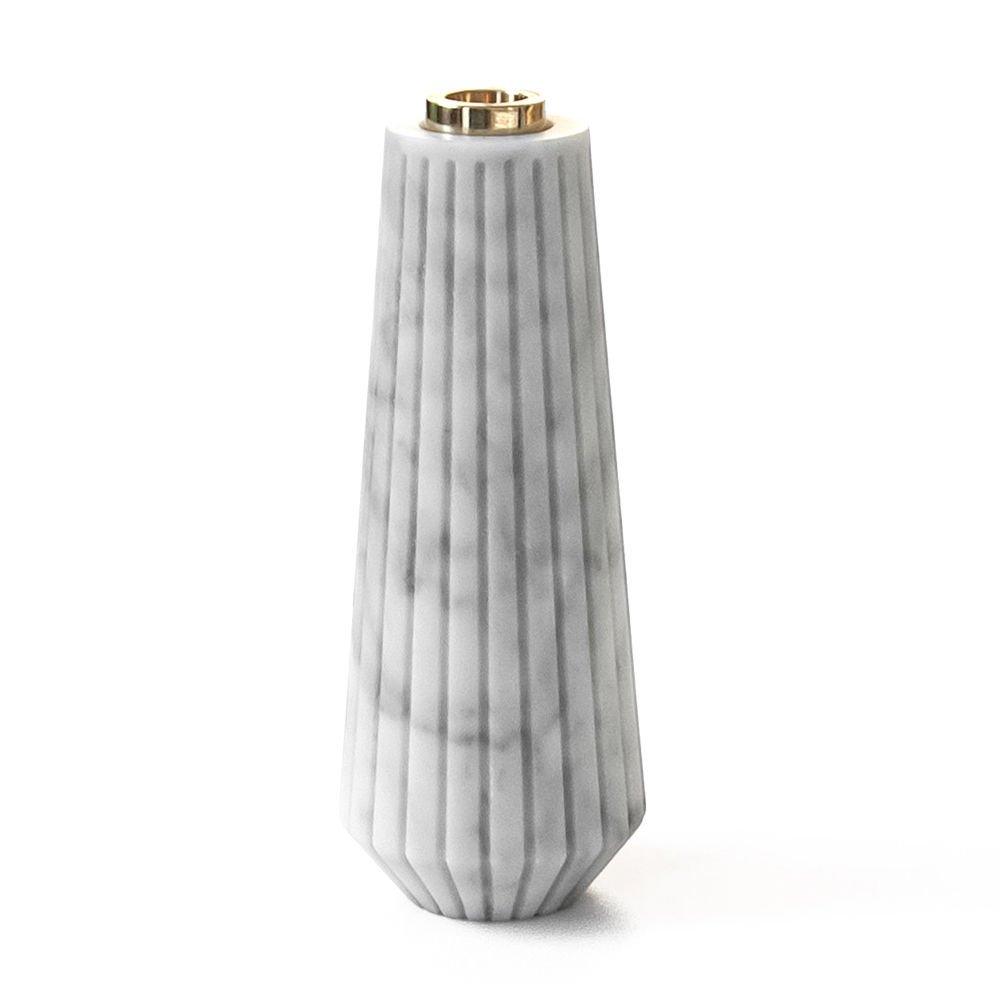 Duży świecznik w paski z białego marmuru z Carrary i mosiądzu, wyprodukowany we Włoszech.