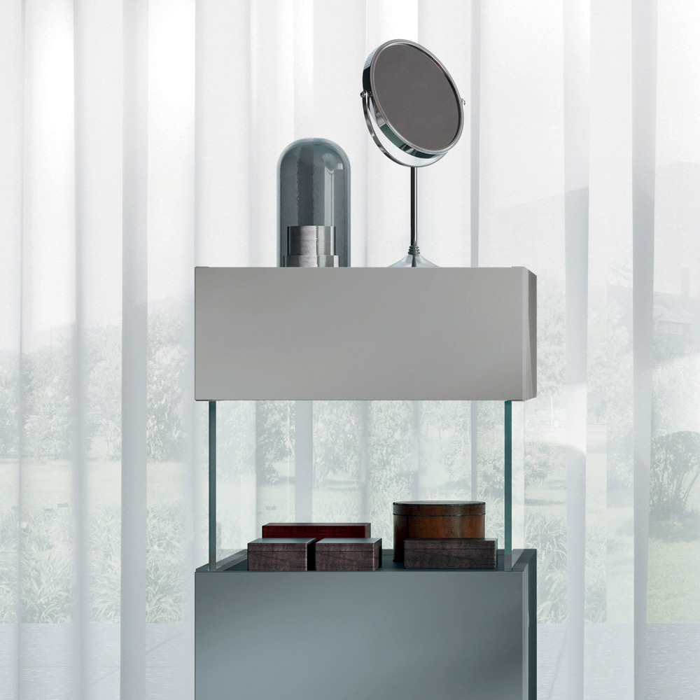ekstremalną liniowością i miękkością, które podbija centrum uwagi, stając się prawdziwym bohaterem sypialni. Grupa akcesoriów, która podsumowuje estetykę pomieszczenia, jest doskonale połączona dzięki swojej