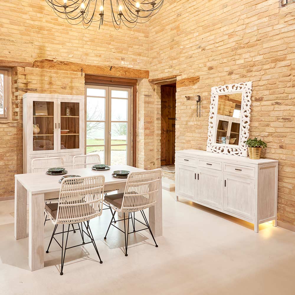 Ten mebel został wykonany ręcznie z naturalnie suszonego drewna – żywego materiału, który z czasem ulega naturalnemu ruchowi. Wszelkie drobne pęknięcia i sęki są nieodłączną cechą drewna i mogą się pojawić z czasem.