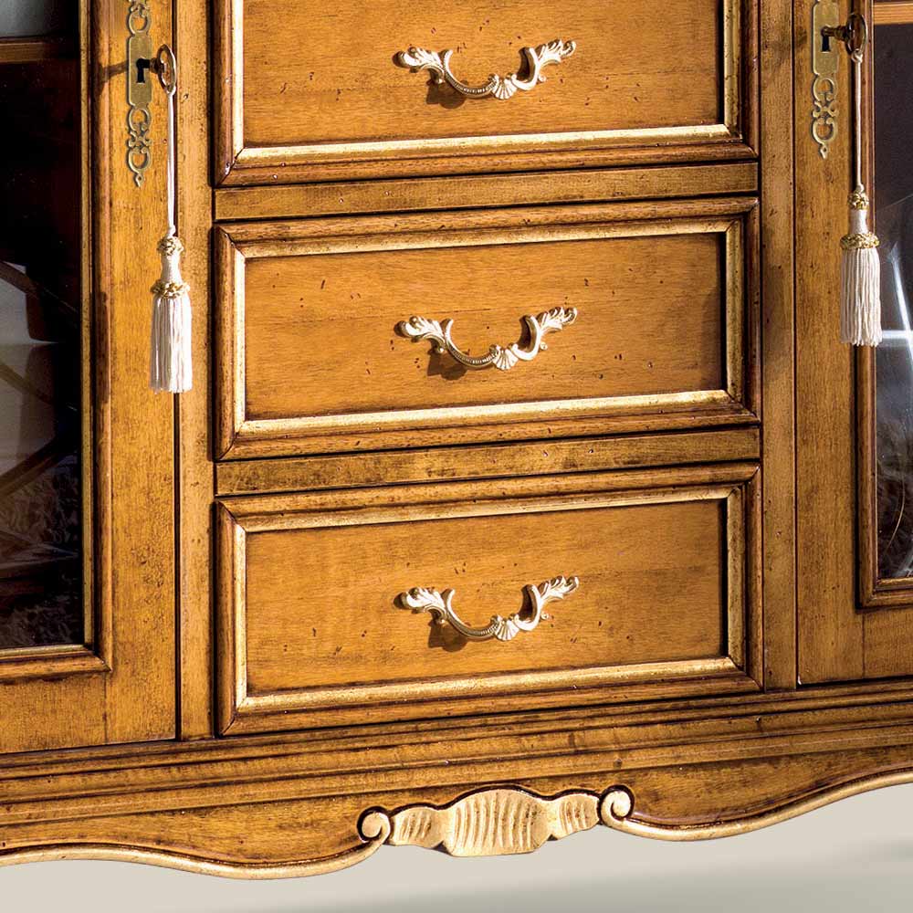 Witryna w stylu klasycznym wykonana ze szlachetnego orzecha Bassano i drewna w kolorze antycznego złota , z 2 szklanymi drzwiami i 5 szufladami. Elegancka i ponadczasowa, ta witryna w klasycznym stylu jest idealna do tworzenia imponujących wnętrz. Całkowicie wyprodukowany we Włoszech i wykonany ręcznie przez wykwalifikowanych mistrzów rzemieślniczych , wykończony mądrością i zamiłowaniem do elegancji. Produkcja odbywa się przy użyciu szlachetnych materiałów , a prace wykonujemy ręcznie z najwyższą starannością i profesjonalizmem, który wyróżnia produkty Made in Italy .