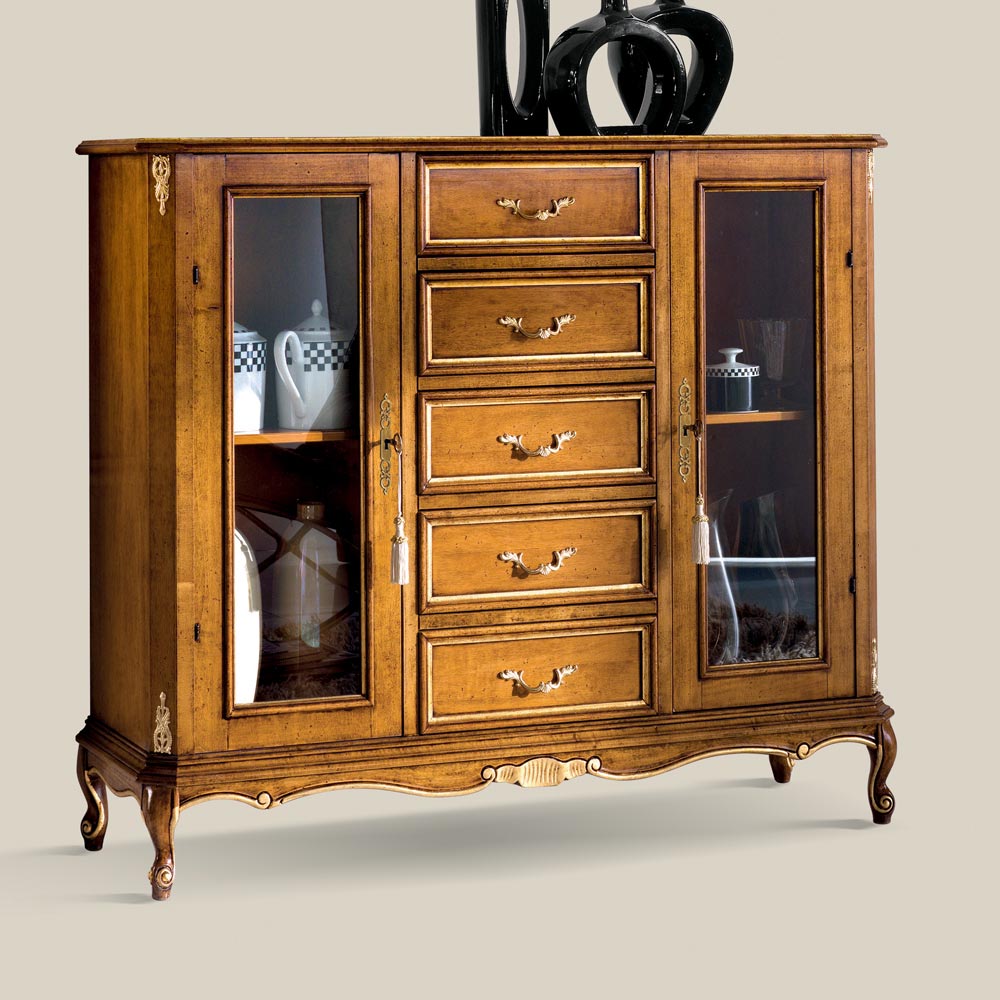 Drewniana gablota do salonu z 2 drzwiami i 5 szufladami Made in Italy.