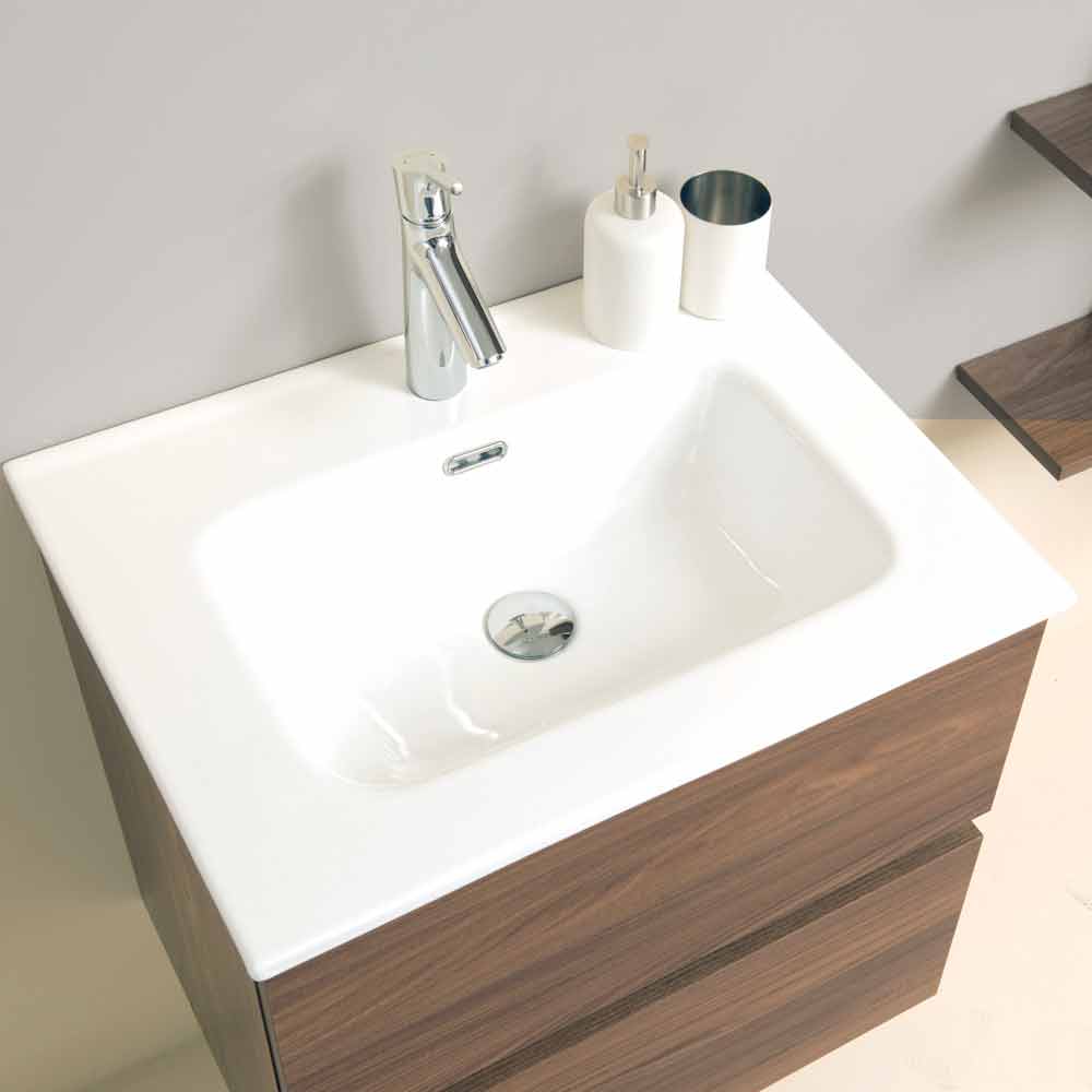 - wbudowana ceramiczna umywalka dł. 60 x szer. 46 x wys. 2 cm;
