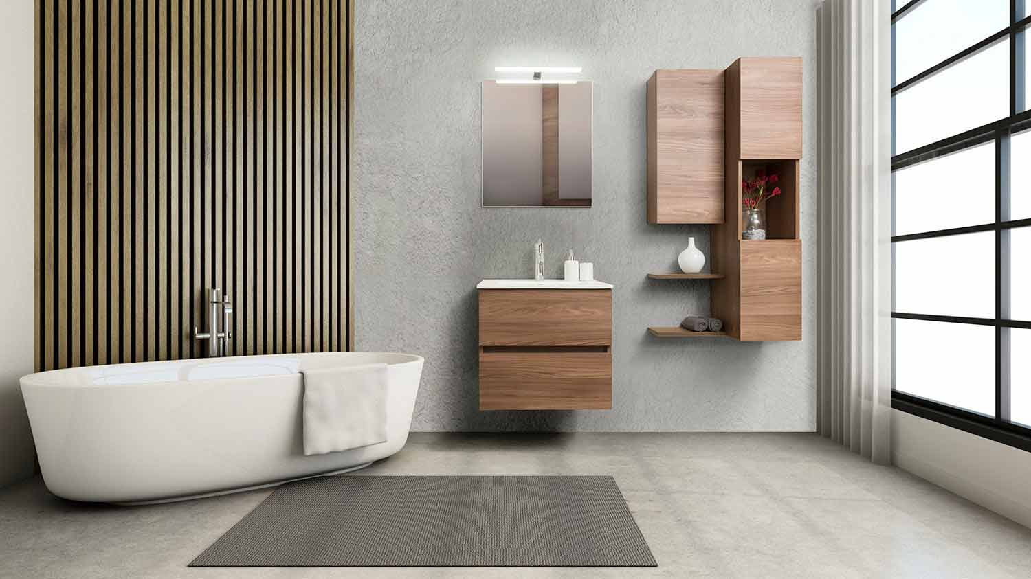 wyrafinowana i elegancka kompozycja podwieszanych mebli łazienkowych wykonanych we Włoszech z wysokiej jakości materiałów.
