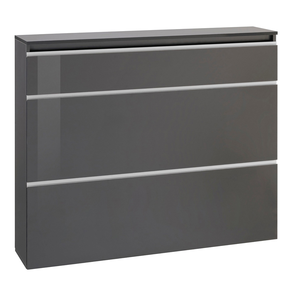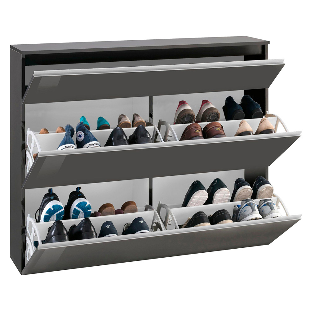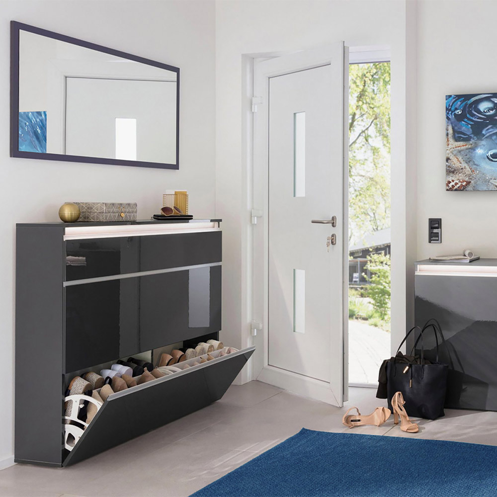 Wykonana we Włoszech designerska szafka na buty z 3 drzwiami z błyszczącego białego lub łupkowego drewna.