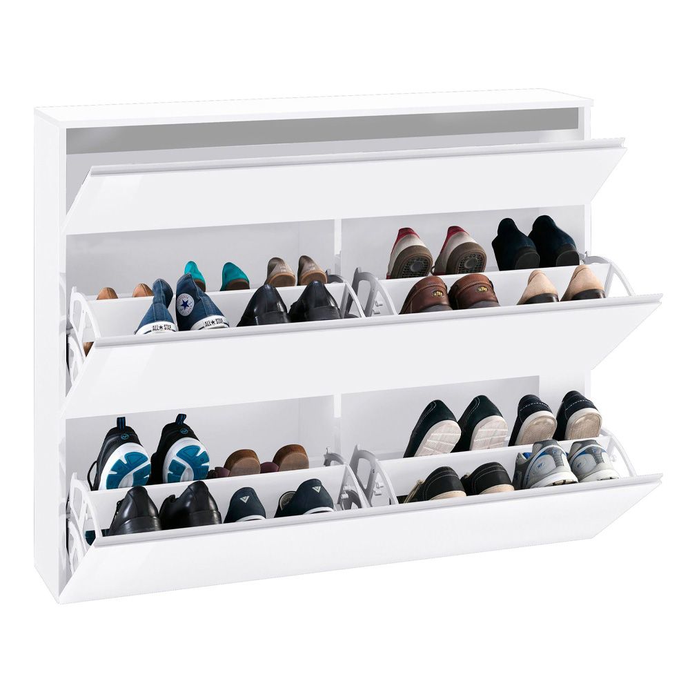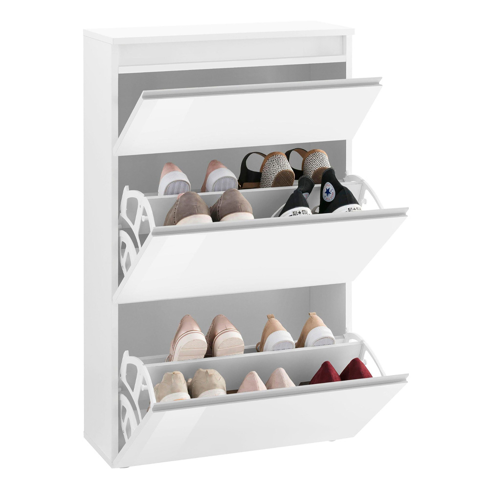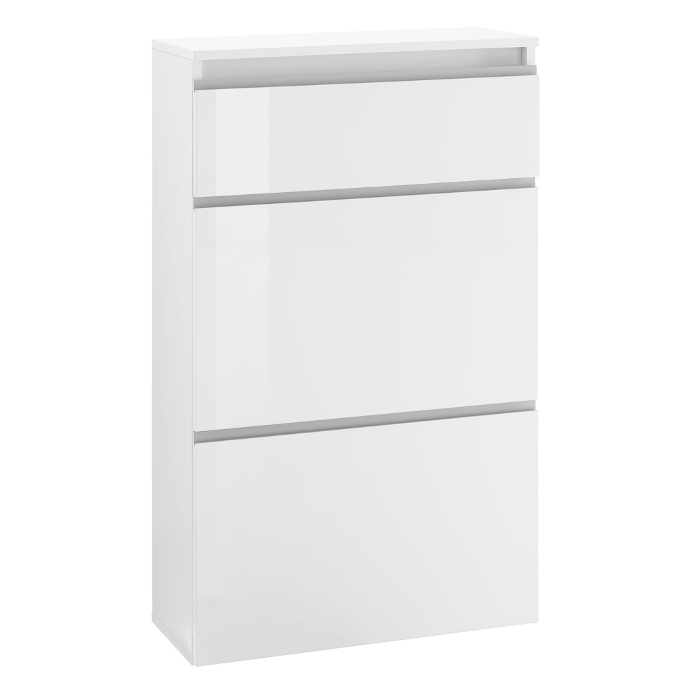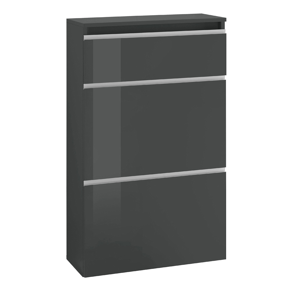 Wykonana we Włoszech designerska szafka na buty z 3 drzwiami z błyszczącego białego lub łupkowego drewna.