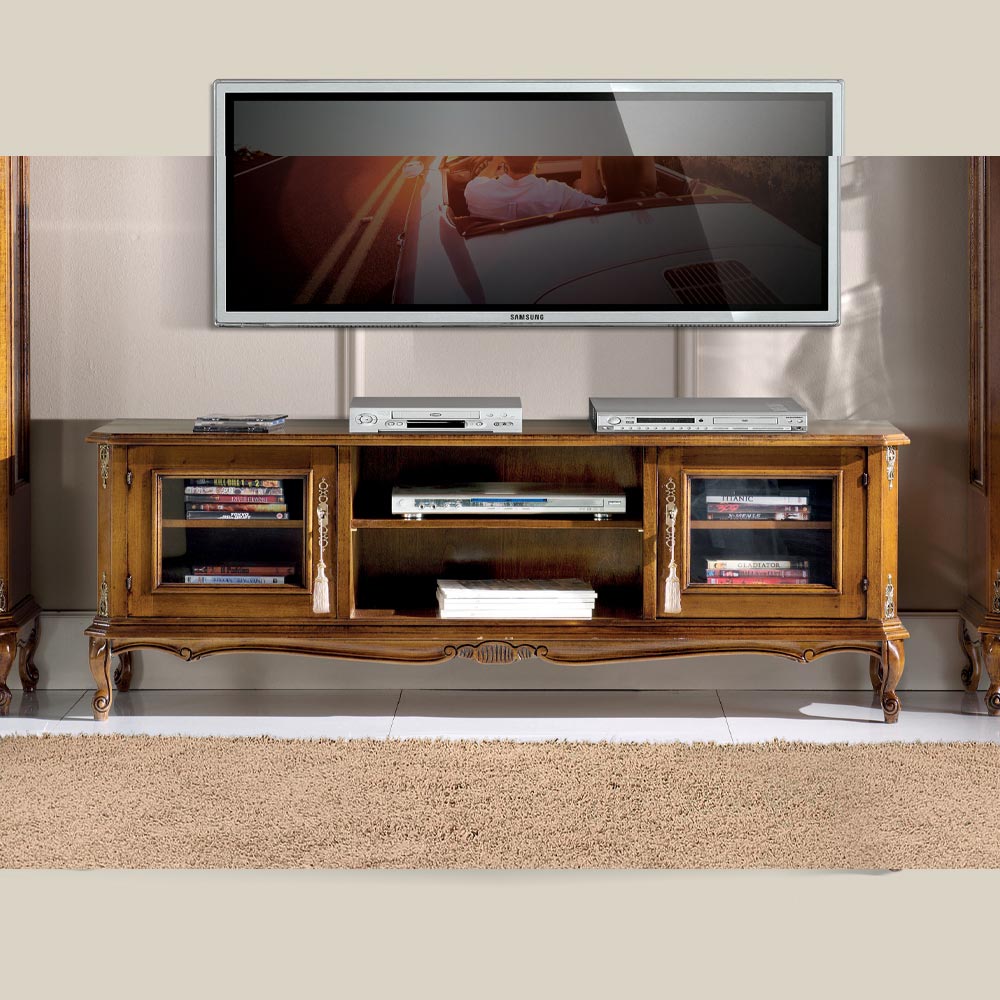 Stojak pod telewizor do salonu z drewna orzechowego Bassano, wyprodukowany we Włoszech.