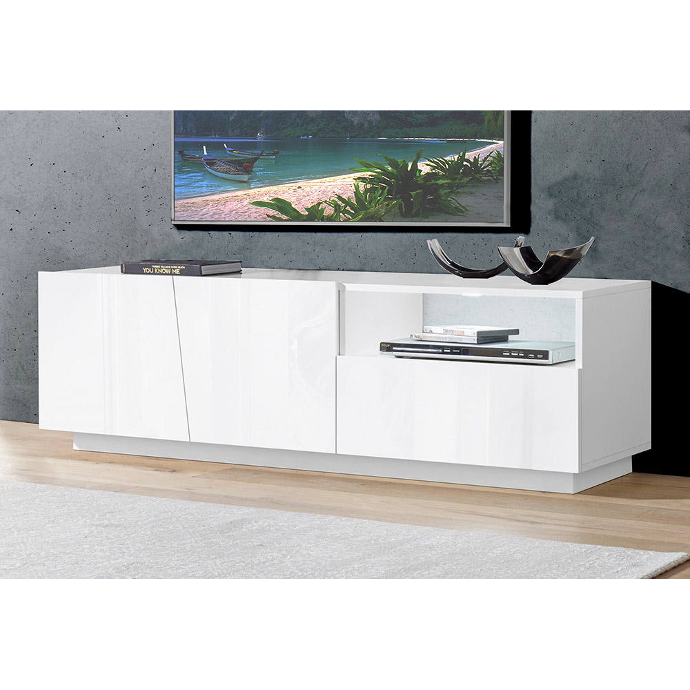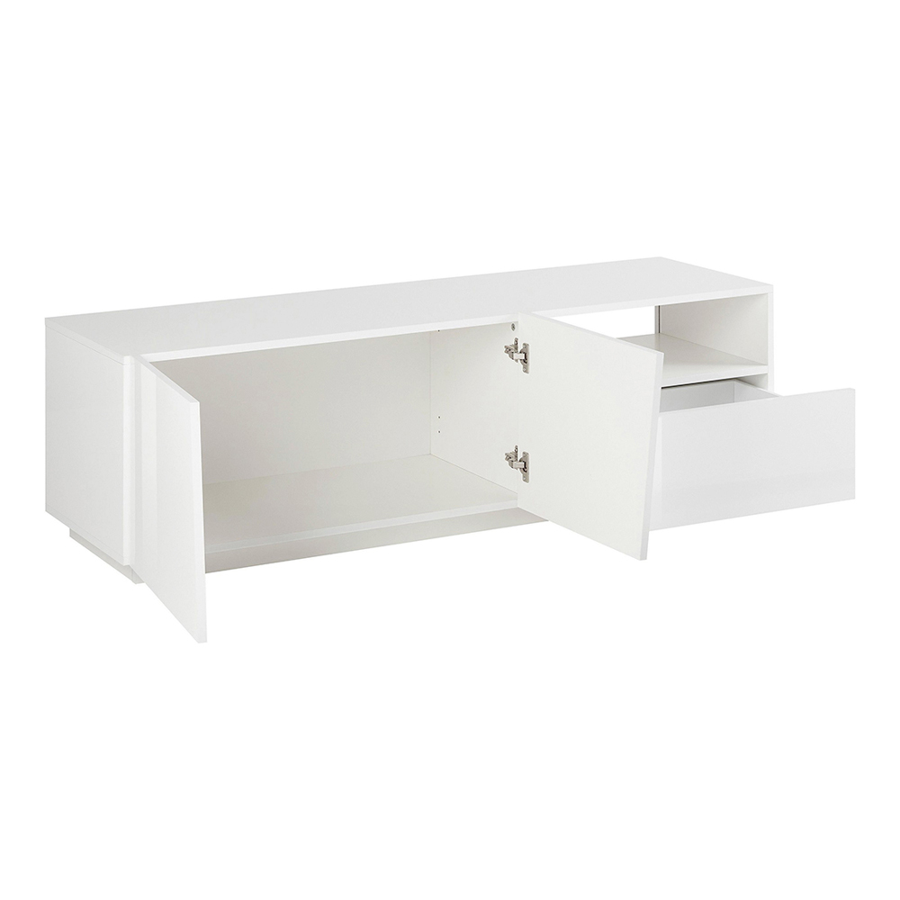 2 drzwi na zawiasach, szuflady i otwartej przegródki , które gwarantują dużo miejsca do przechowywania. Wykonany jest z