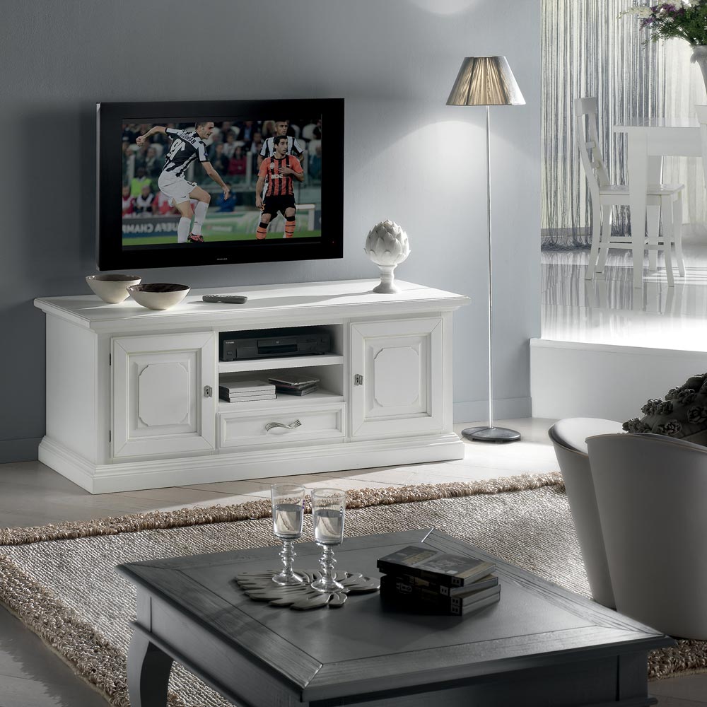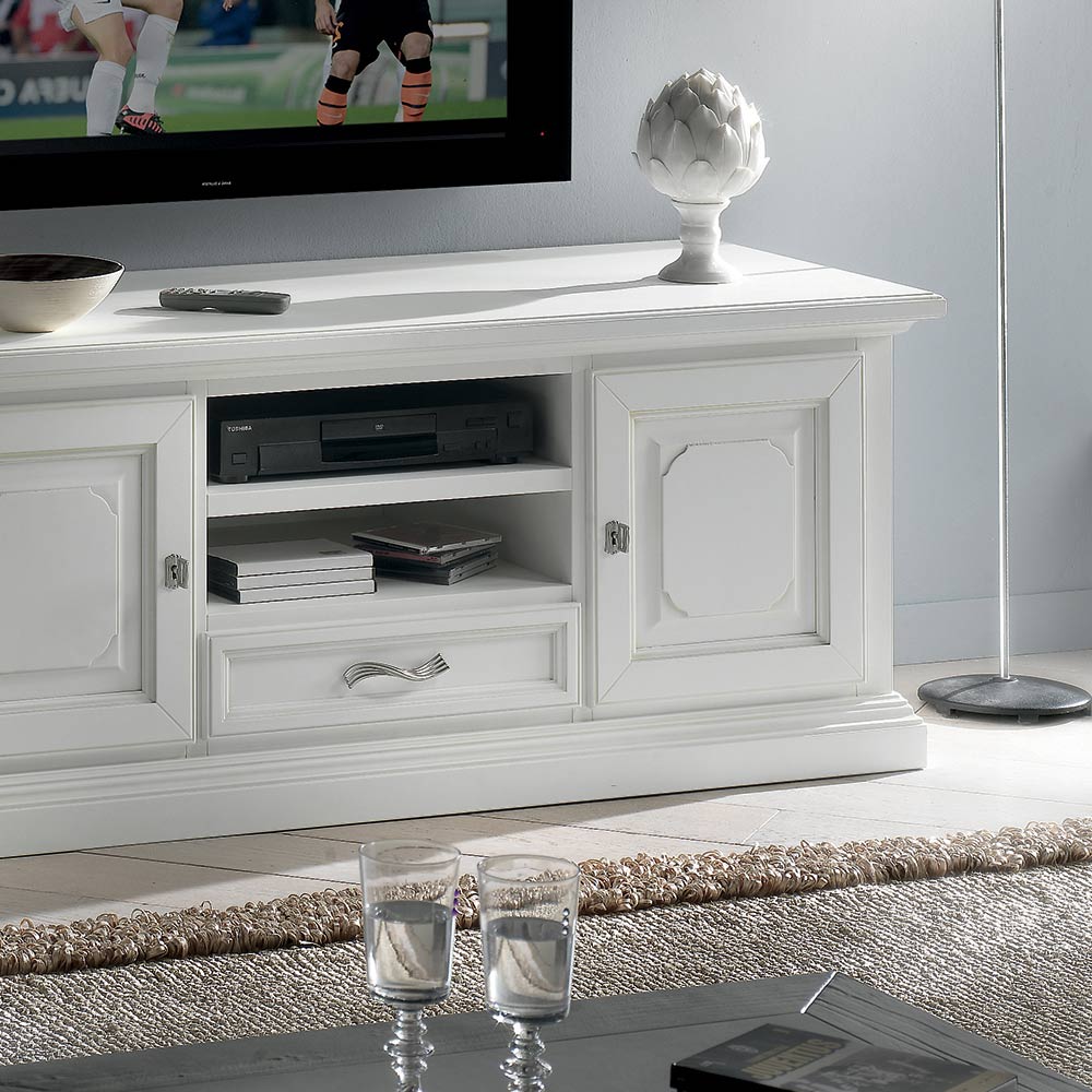 Wykonany we Włoszech drewniany stolik pod telewizor do salonu