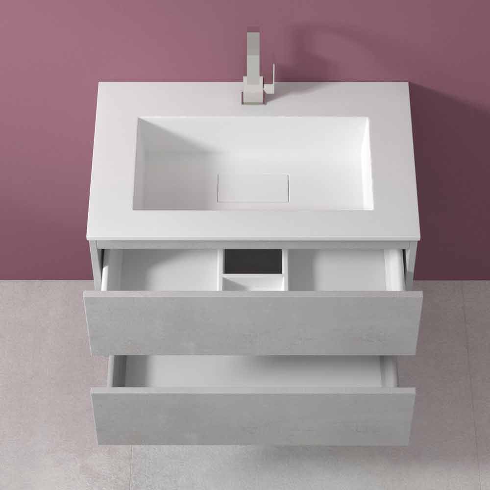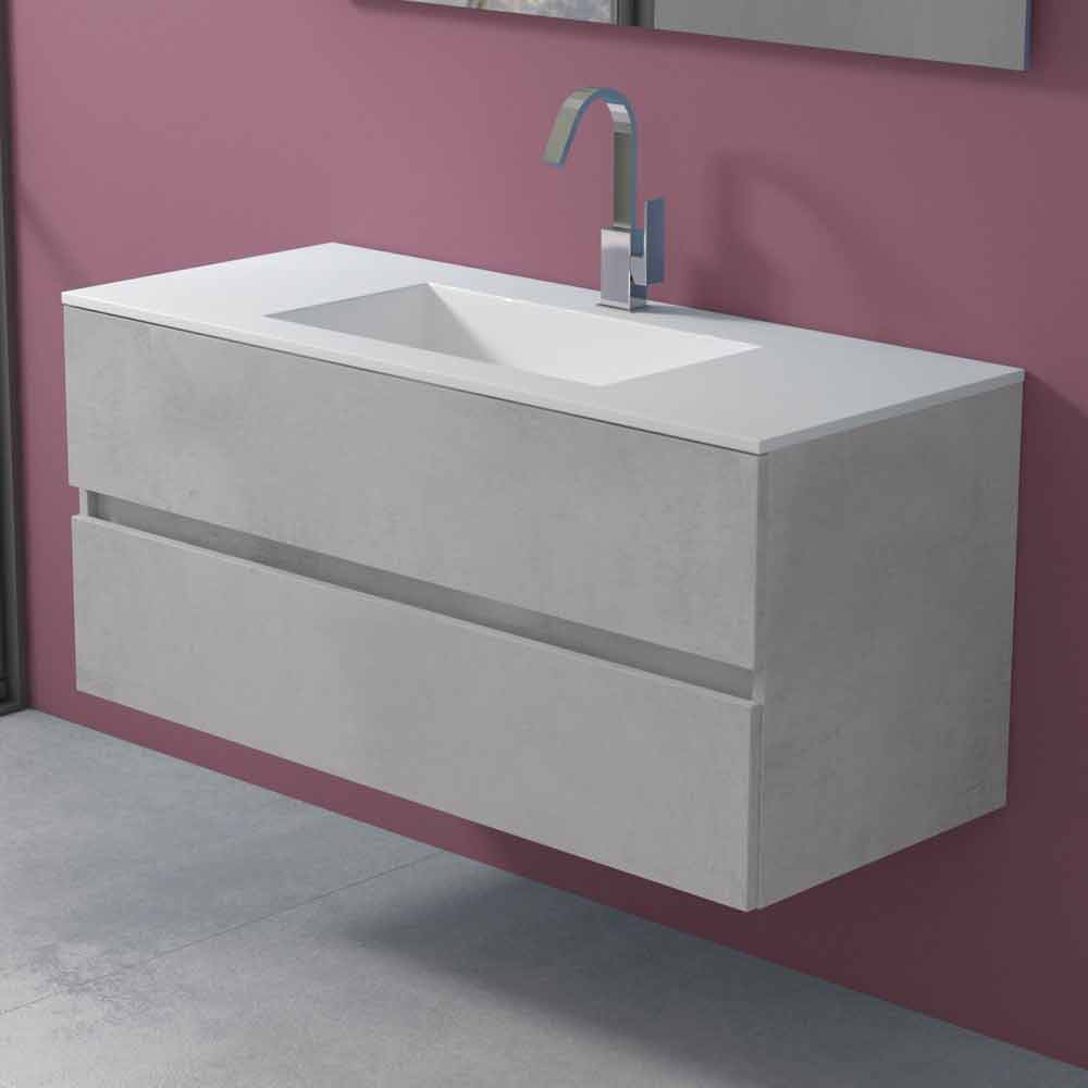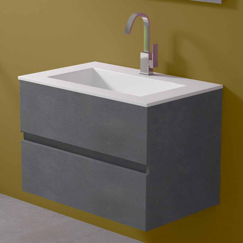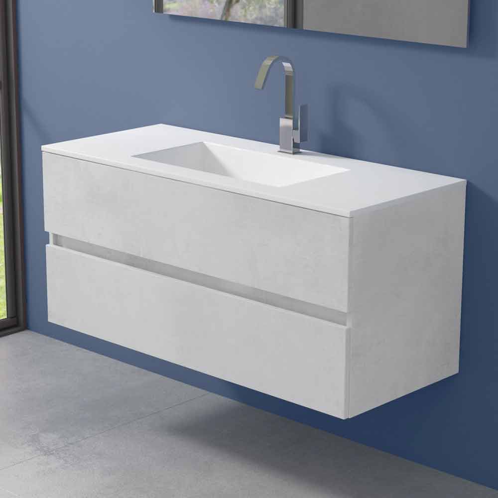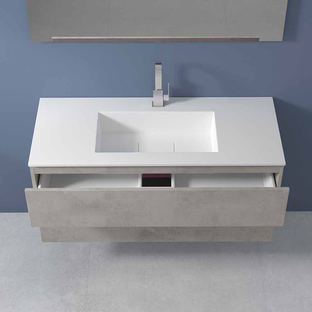 To podwieszane meble łazienkowe ze zintegrowaną prostokątną umywalką, gwarantujące nie tylko praktyczność i funkcjonalność, ale także wyrafinowany i nowoczesny klimat, zapewniający ponadczasowy design.