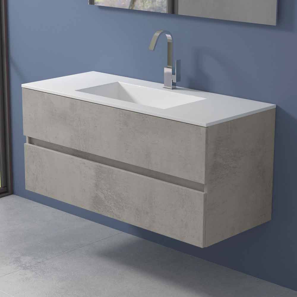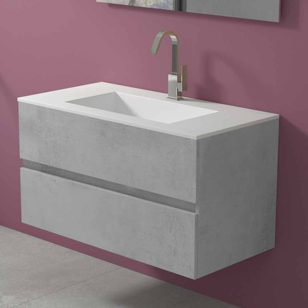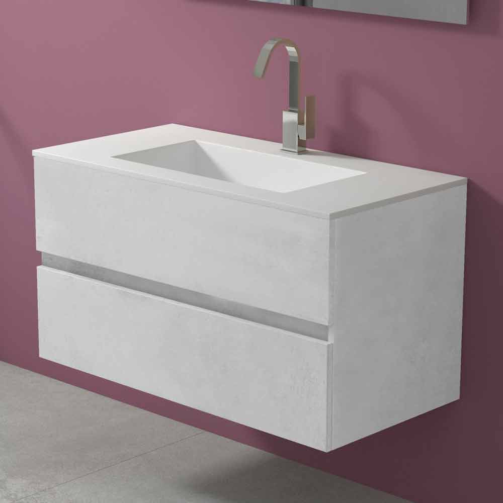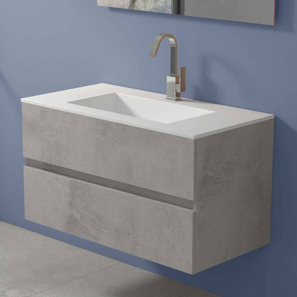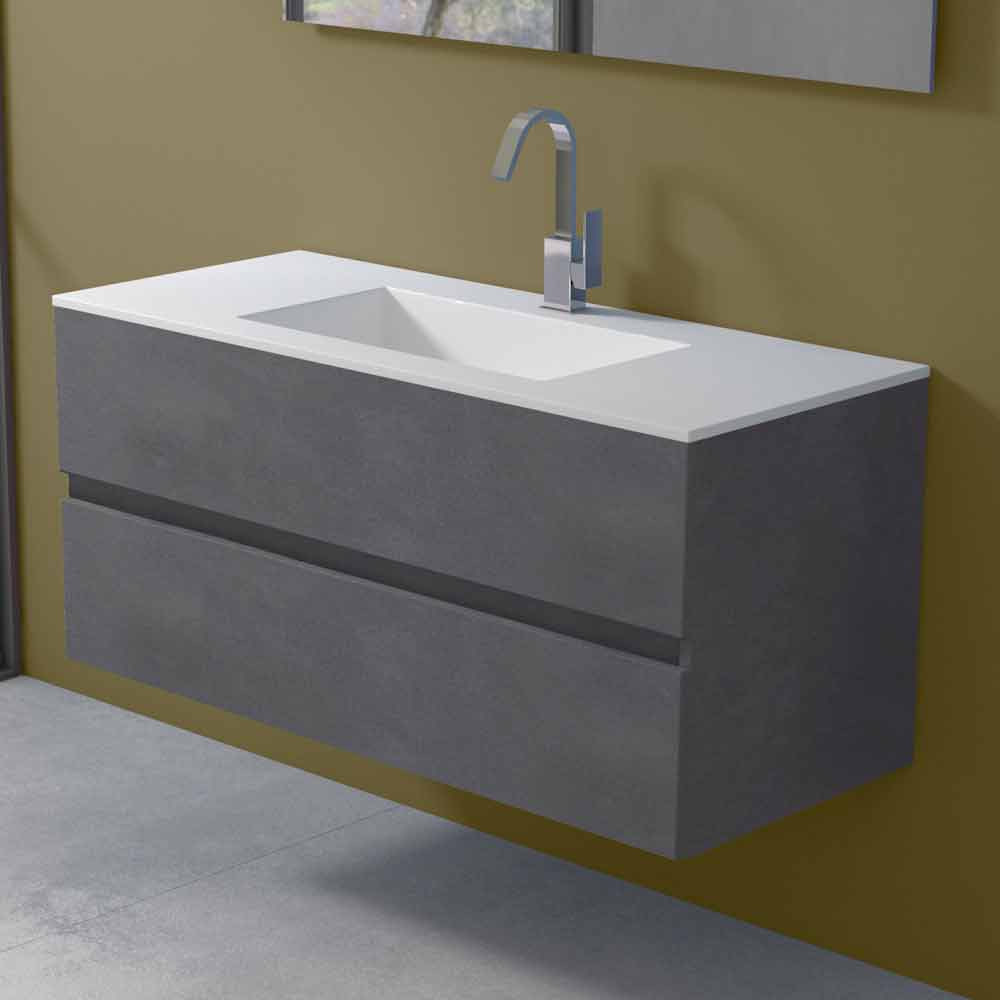 To podwieszane meble łazienkowe ze zintegrowaną prostokątną umywalką, gwarantujące nie tylko praktyczność i funkcjonalność, ale także wyrafinowany i nowoczesny klimat, zapewniający ponadczasowy design.