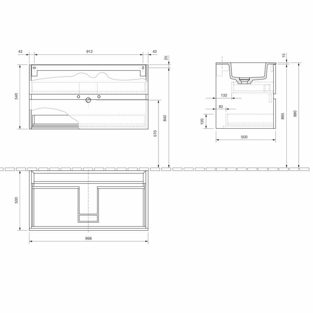 Podstawa umywalki ze standardową szufladą i wyprofilowaną szufladą wykonana jest z laminowanego i wodoodpornego włókna drzewnego hydro W 100 , aby zapewnić większą trwałość i zapobiec uszkodzeniu szafki w kontakcie z wodą.