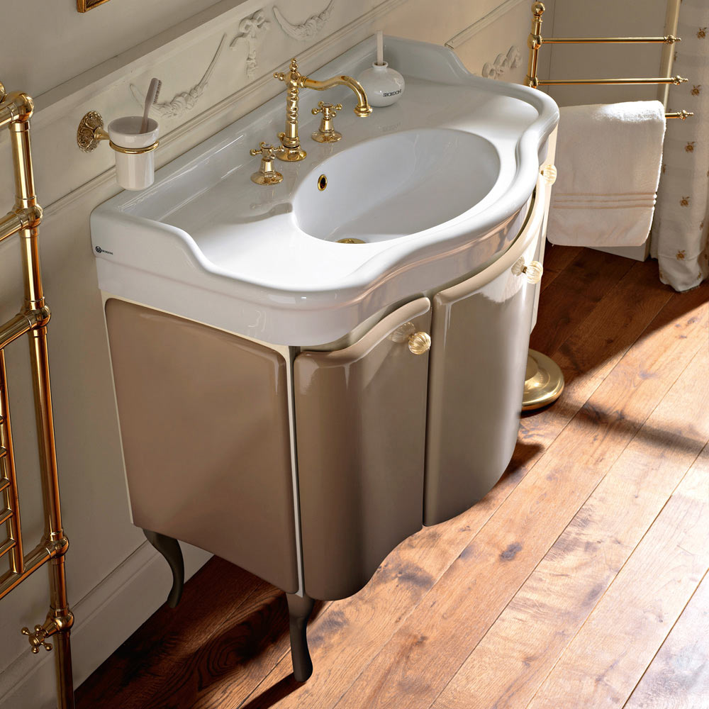 Dwukolorowa szafka łazienkowa z ceramiczną umywalką Made in Italy