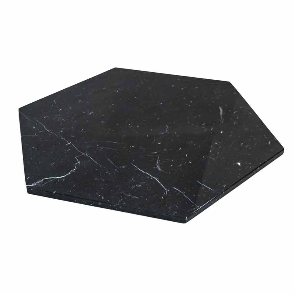 Sześciokątny talerz do serwowania z białego lub czarnego marmuru, wyprodukowany we Włoszech.