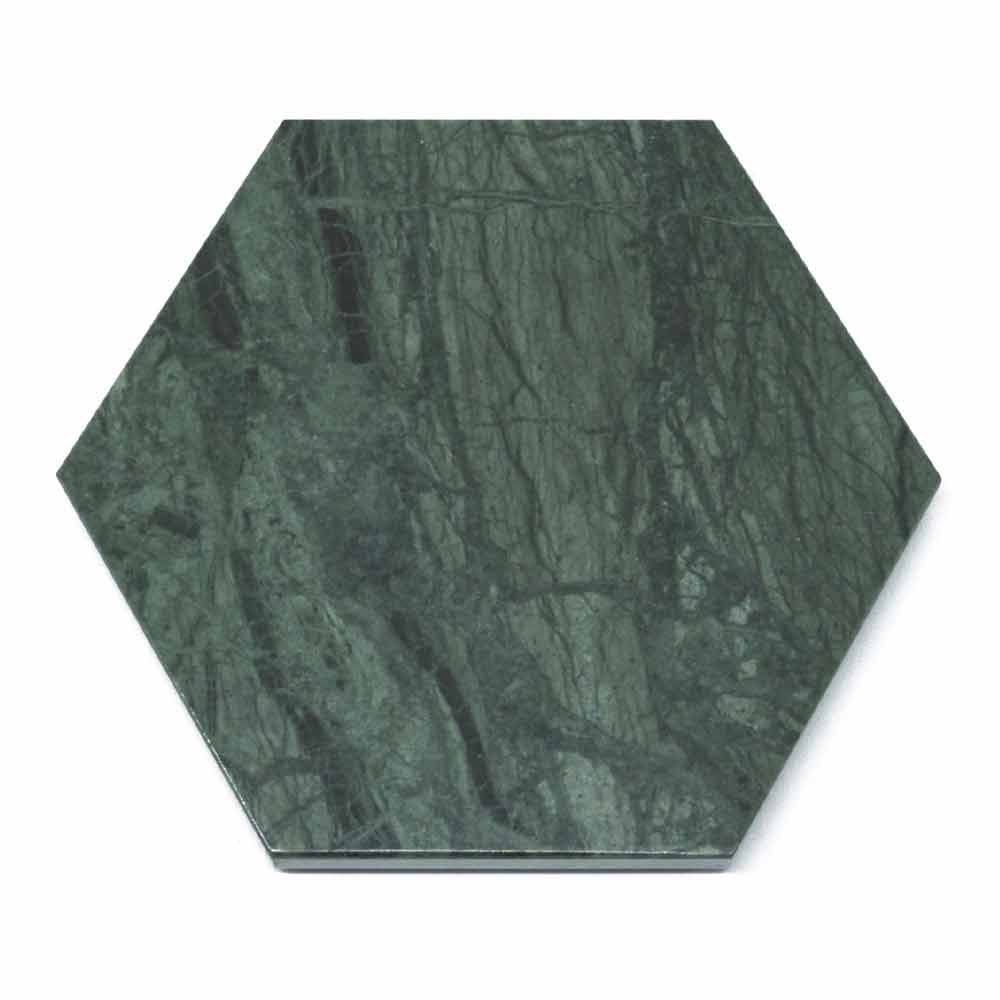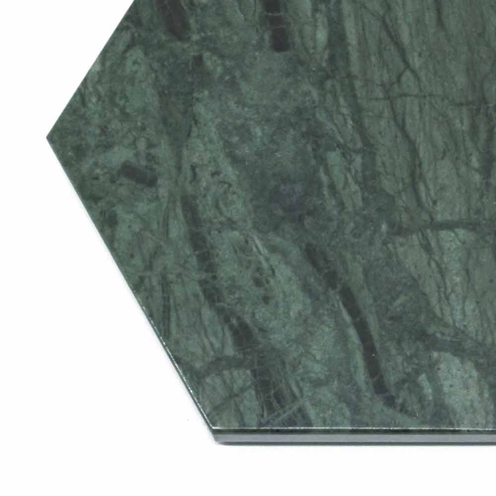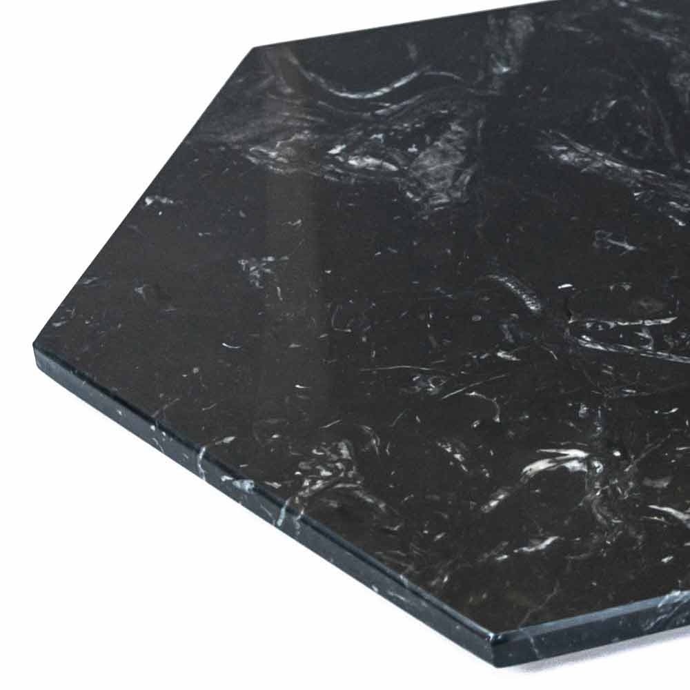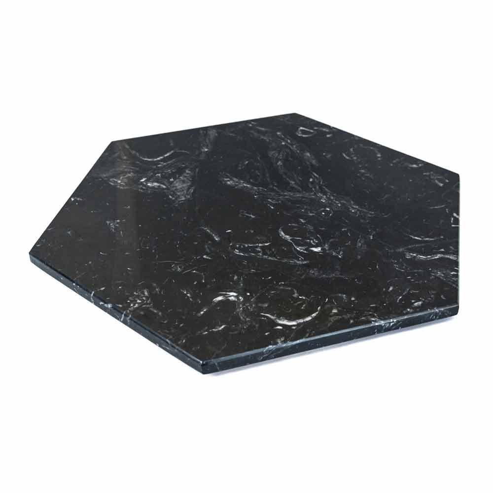 Sześciokątny talerz do serwowania z czarnego marmuru Marquinia lub zielonego Gwatemali z korkiem, 2 sztuki wyprodukowany we Włoszech.
