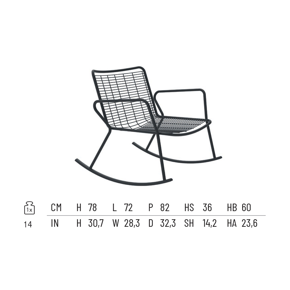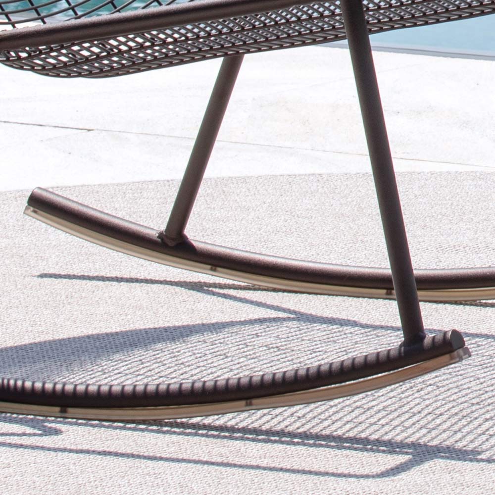 Leżanka bujana do użytku na zewnątrz z podłokietnikami. Wyprodukowano we Włoszech.