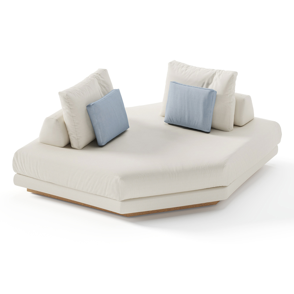 Narożna szezlong ogrodowy z centralną strukturą z tkaniny Made in Italy