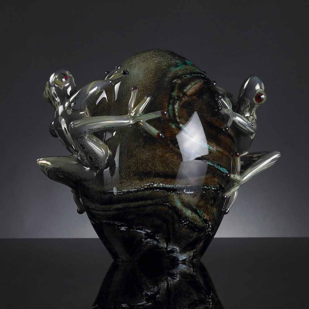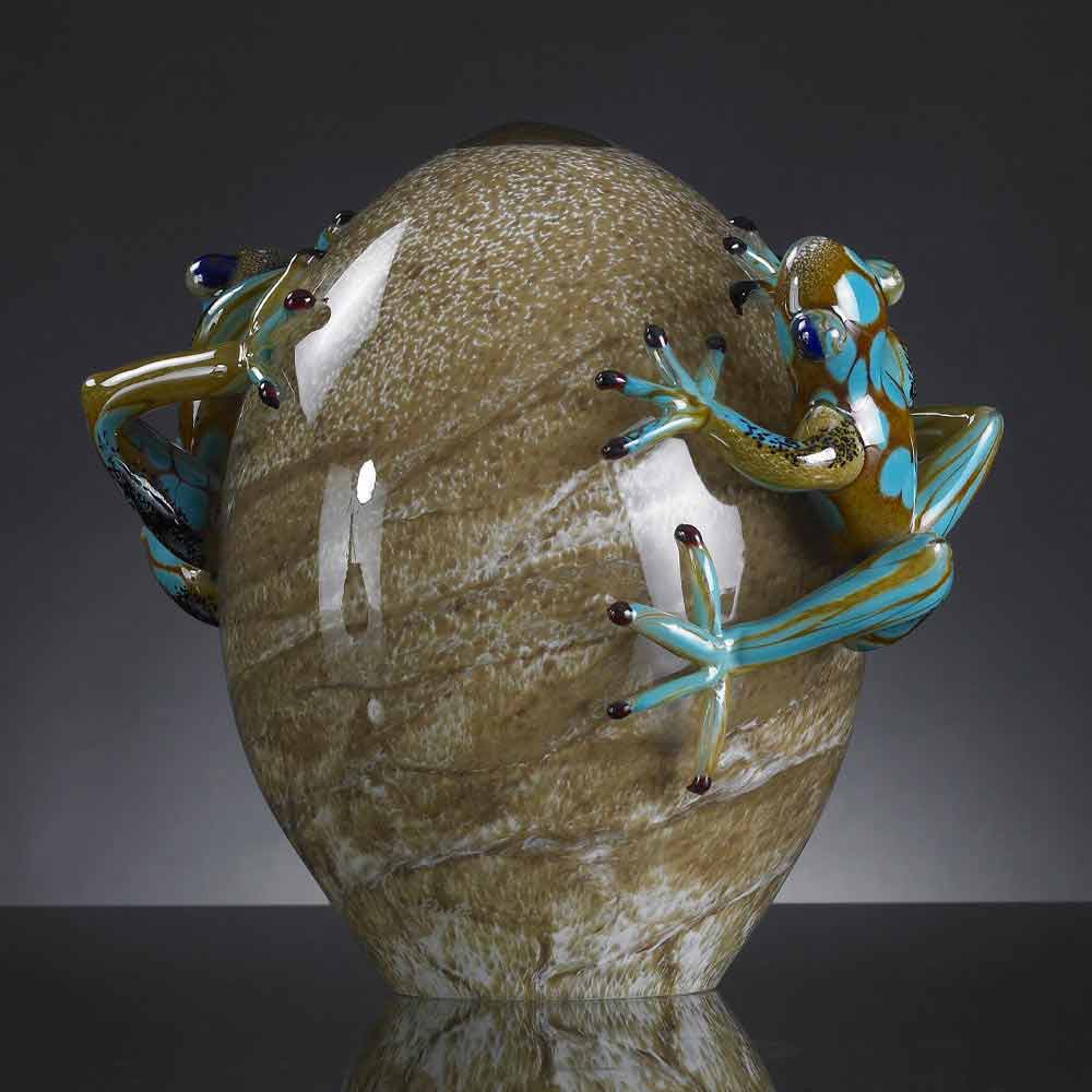 Figura dekoracyjna w kształcie żaby na jajku wykonana we Włoszech z