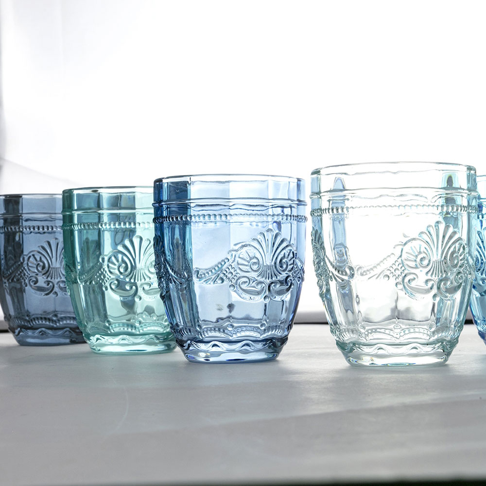 Kolorowe i eleganckie kieliszki w szklanym serwisie 12 szt. na wodę.