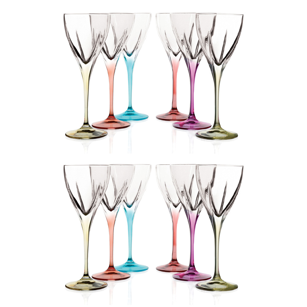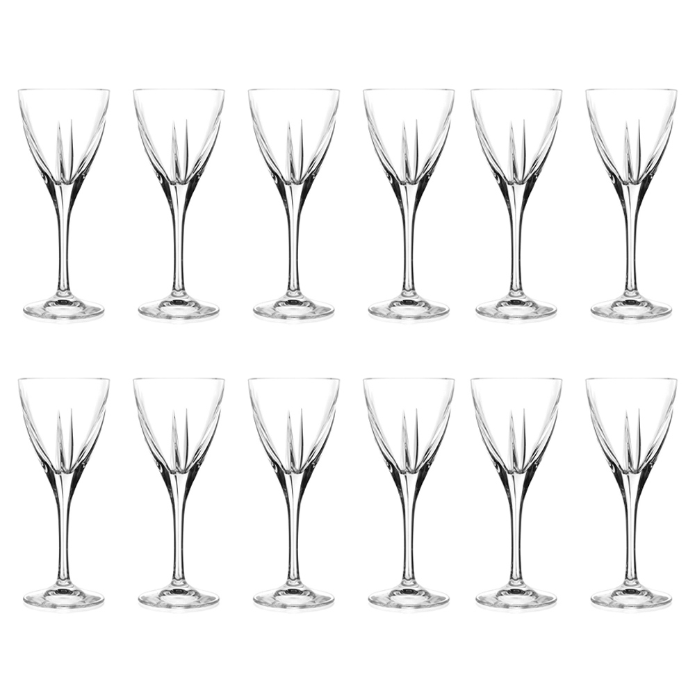 Komplet kieliszków do likieru w przezroczystym lub kolorowym ekokrysztale, 12 sztuk wyprodukowanych we Włoszech.