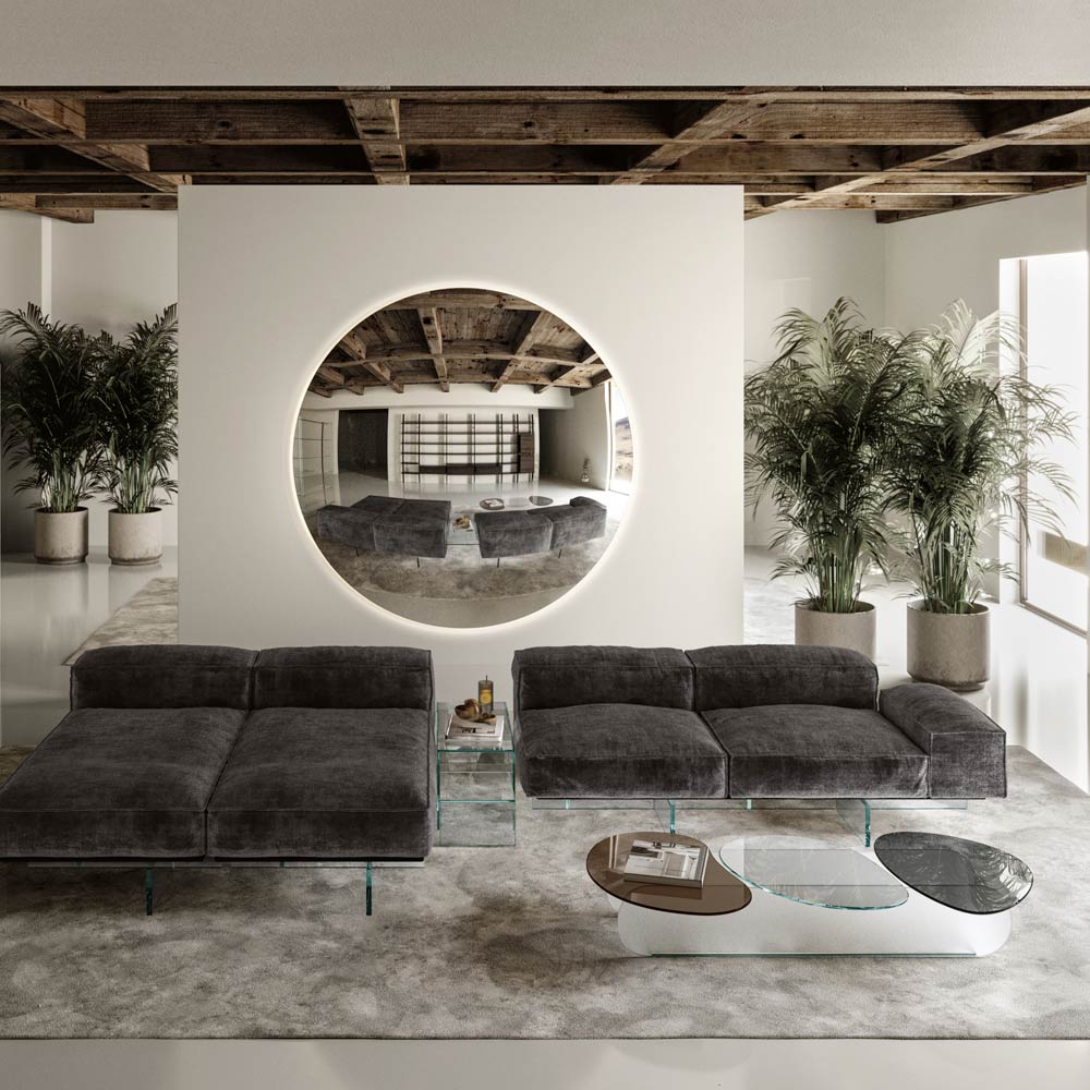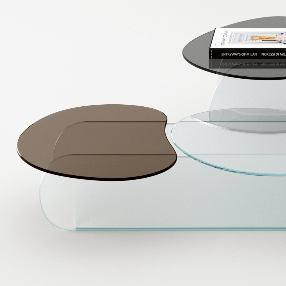 Ten stolik kawowy prezentuje się jako funkcjonalne dzieło sztuki, które łączy w sobie elegancję i wszechstronność w jednym wyrafinowanym projekcie. Szklane powierzchnie harmonijnie łączą się z zaokrąglonymi elementami , tworząc wizualny kontrast, który jest zarówno przyciągający wzrok, jak i praktyczny.