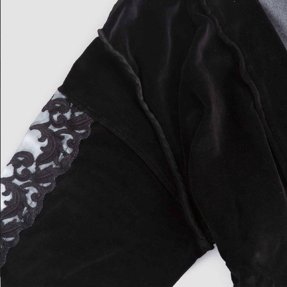 Czarny szenilowy szlafrok lub kimono z koronką Farnese, elegancja made in Italy.