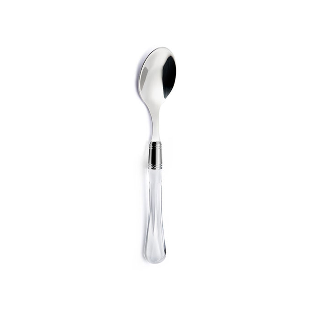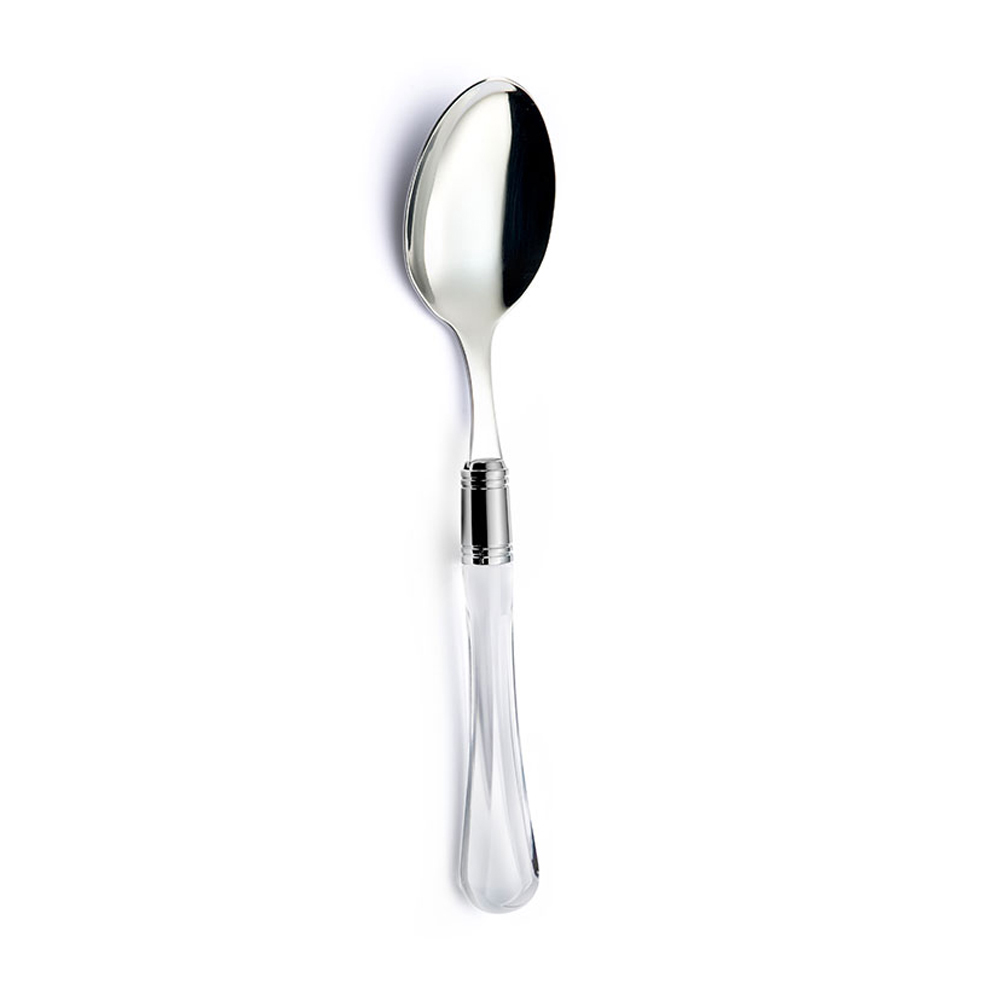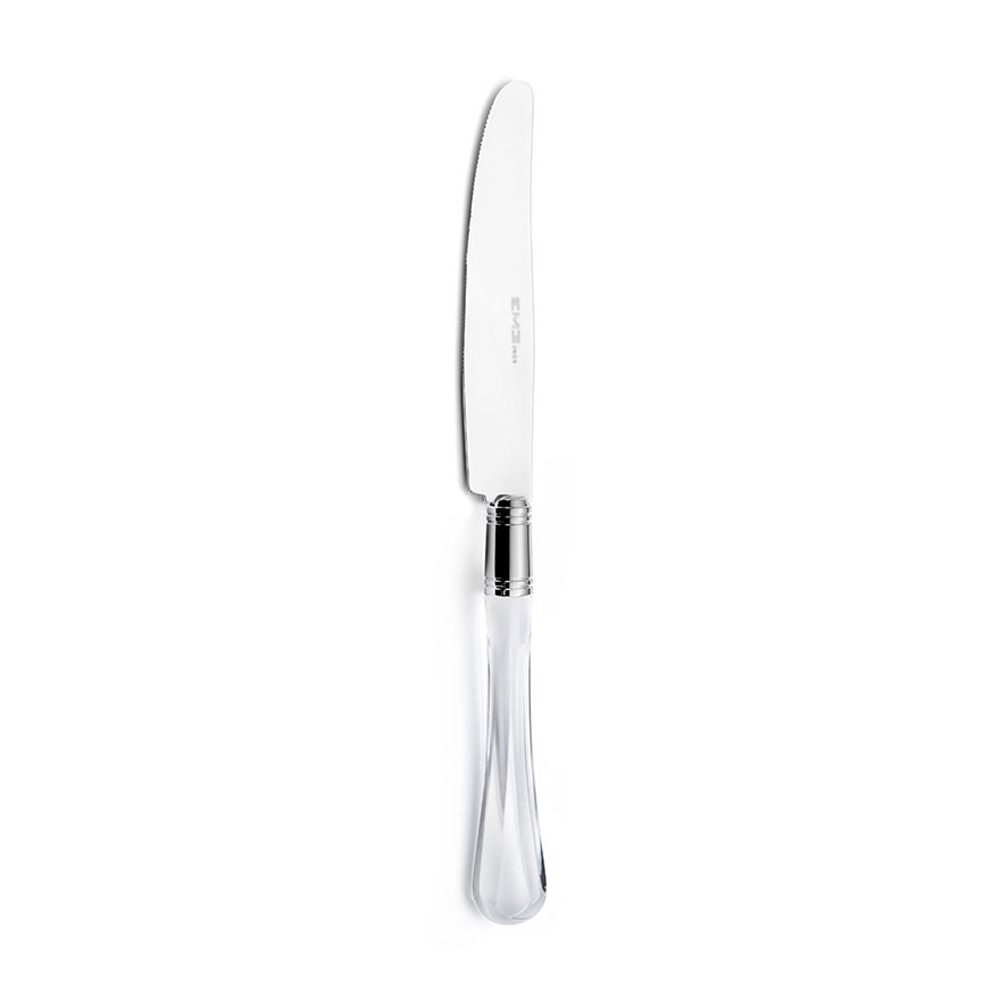 szlachetnych kamieni. Chromowany pierścionek pełni podwójną rolę: nie tylko ukrywa stalowy przeszczep w przezroczystym uchwycie, ale także sprawia, że sztućce są równie ważne jak prawdziwy klejnot.