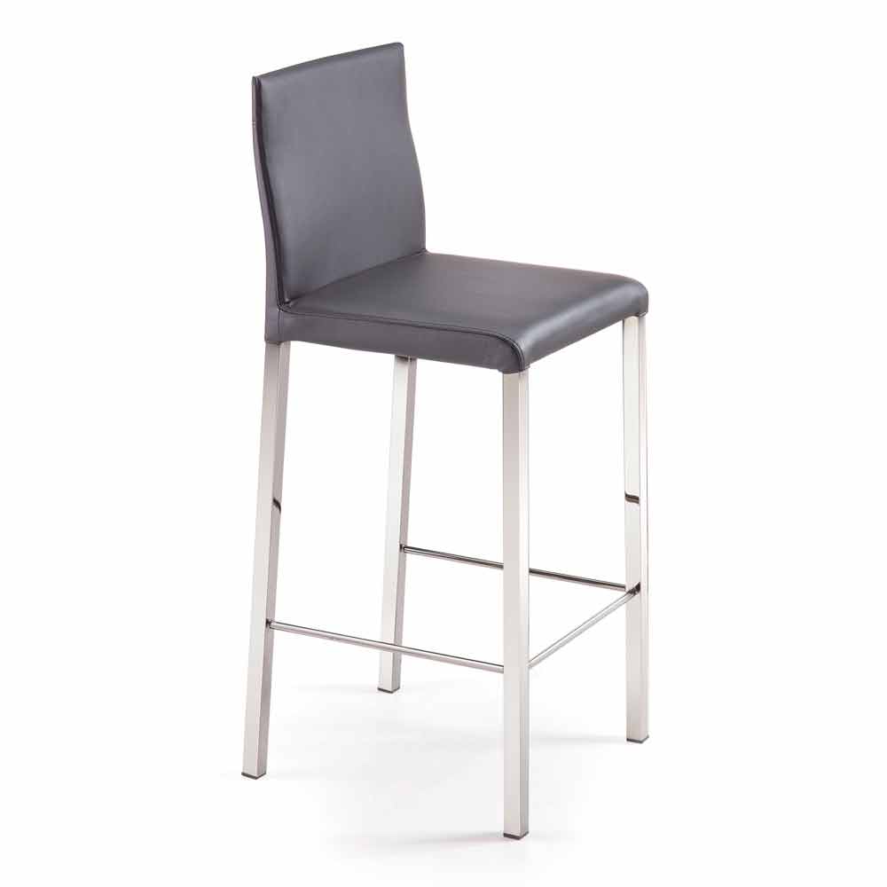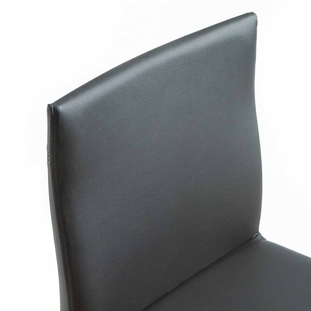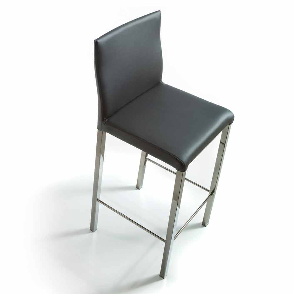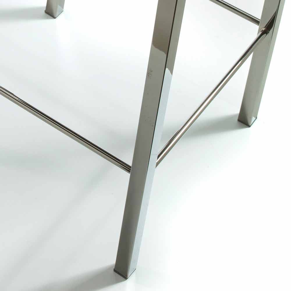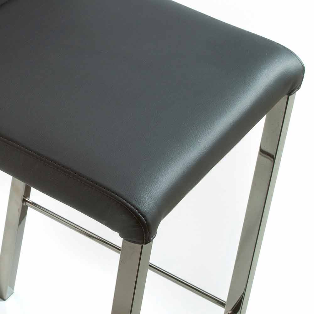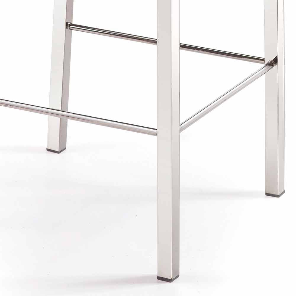 - kwadratowa noga w chromowanym wykończeniu z siedziskiem pokrytym gliną eko-skórą (materiał złożony z bawełnianej bazy i warstwy materiału syntetycznego, odpornego na ścieranie i zużycie)