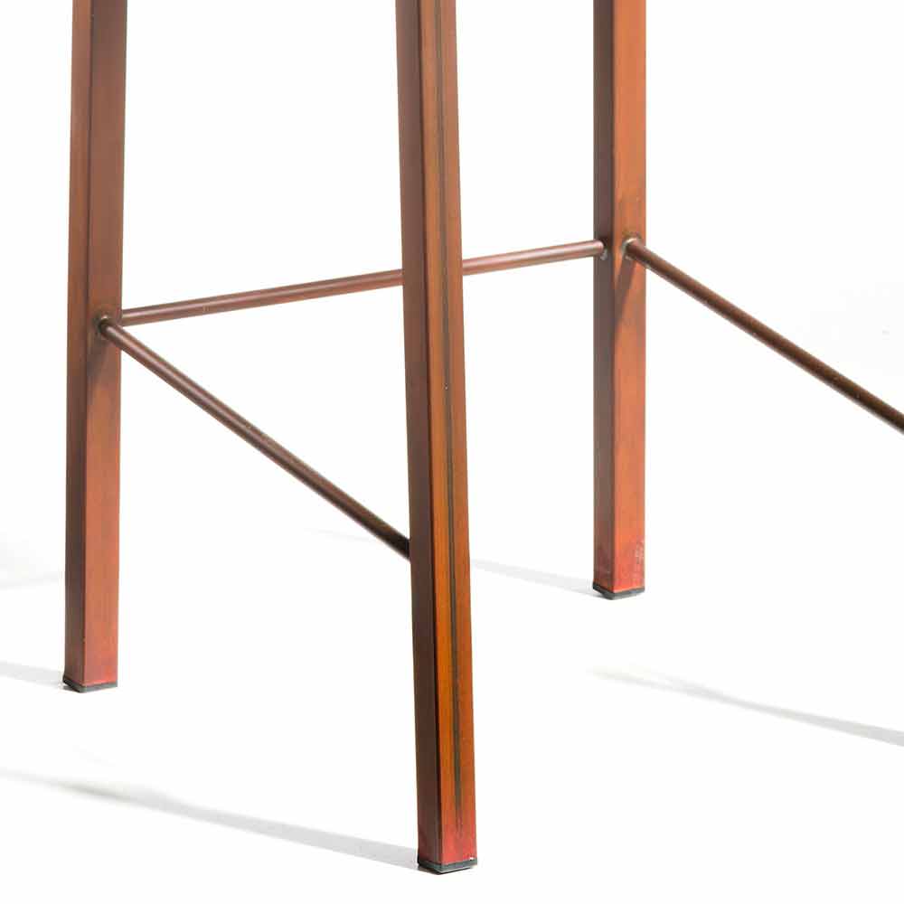 - kwadratowa noga w wykończeniu corten z siedziskiem pokrytym ciemnobrązowym hydrokordeksem (tkanina o bardzo wysokiej odporności na ścieranie, ścieranie, rozdarcie i ścieranie). Zmywalna, wodoodporna i odporna na wilgoć)
