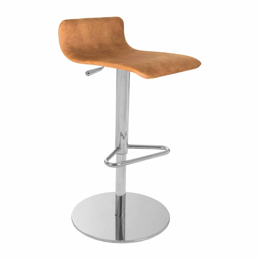 - okrągła podstawa w chromowanym wykończeniu i siedzisko pokryte brązowym econabuk (materiał podobny do zamszu, bardzo miękki w dotyku)