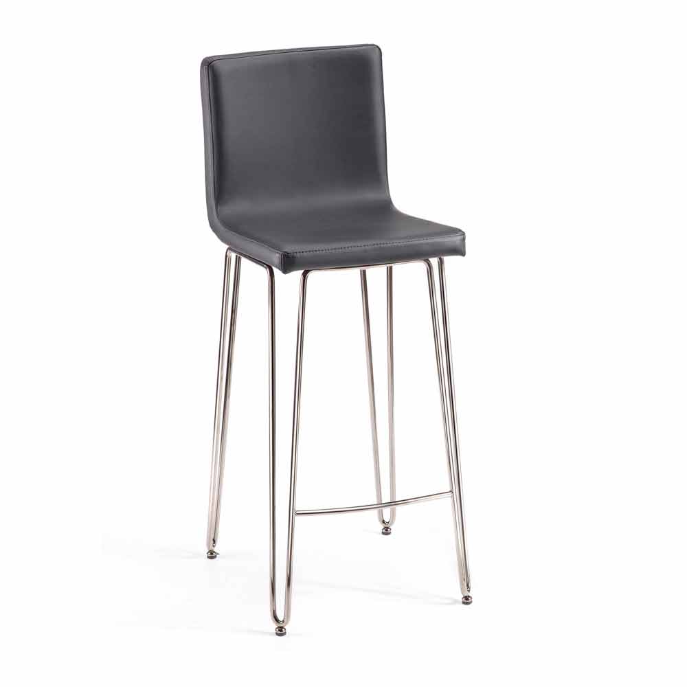 - metalowe nogi w chromowanym wykończeniu i siedzisko pokryte czarną skórą imitującą skórę (materiał złożony z bawełnianej bazy i warstwy syntetycznego materiału, odpornej na ścieranie i zużycie)