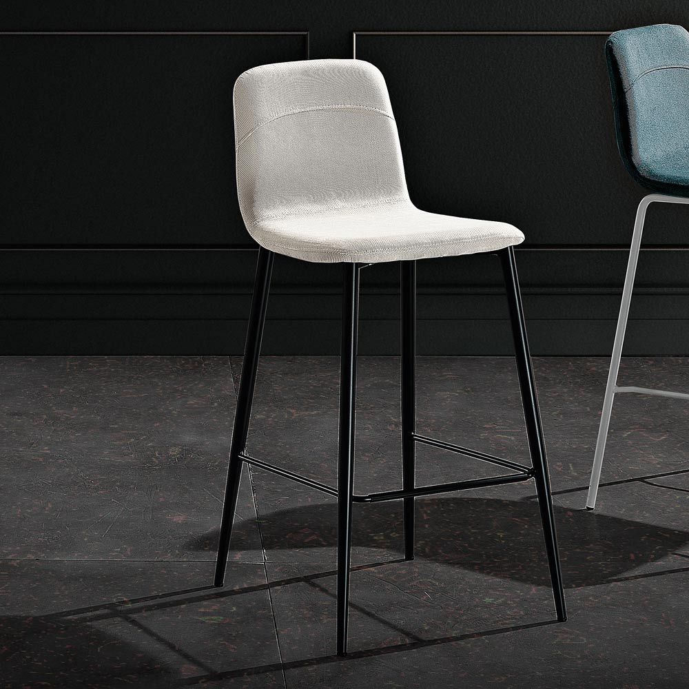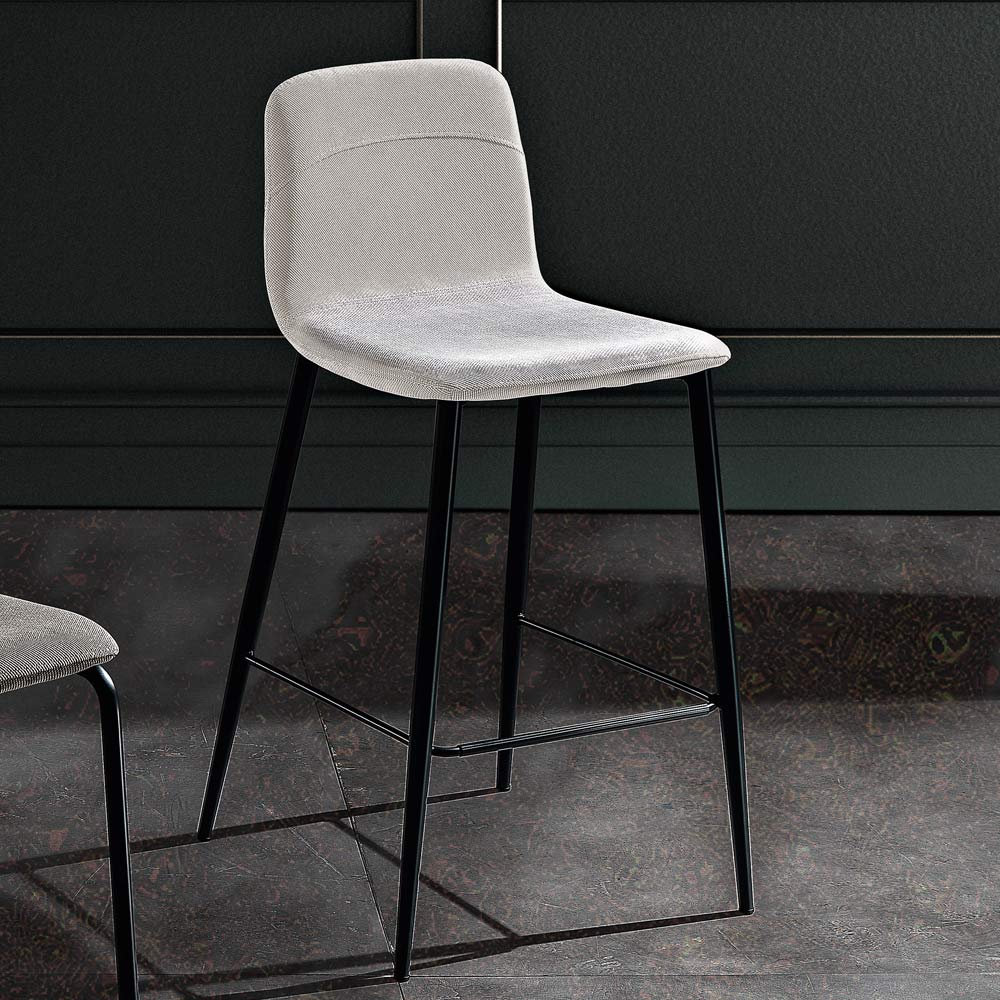 Taboret kuchenny z siedziskiem pokrytym tkaniną i metalową ramą z okrągłą rurą (średnica 16 mm) w matowym antracytowym wykończeniu RAL 7021 w komplecie z praktycznym podnóżkiem, wyprodukowane we Włoszech.