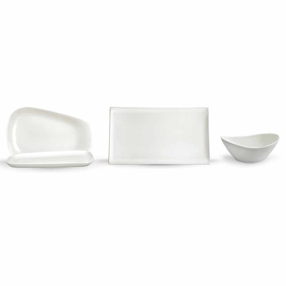 Zestaw do serwowania z białej porcelany w kolorze kości słoniowej, nowoczesny i elegancki design stołu, 14 sztuk.