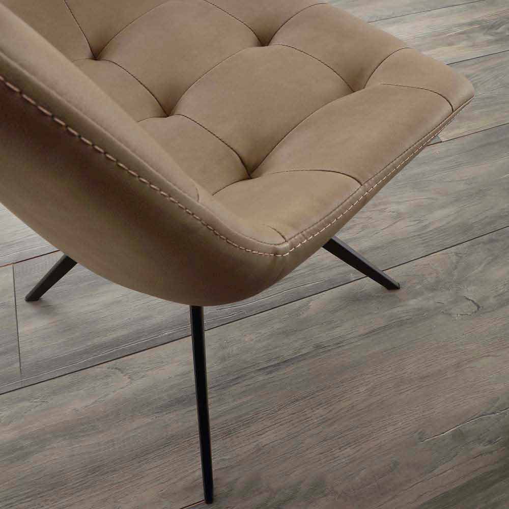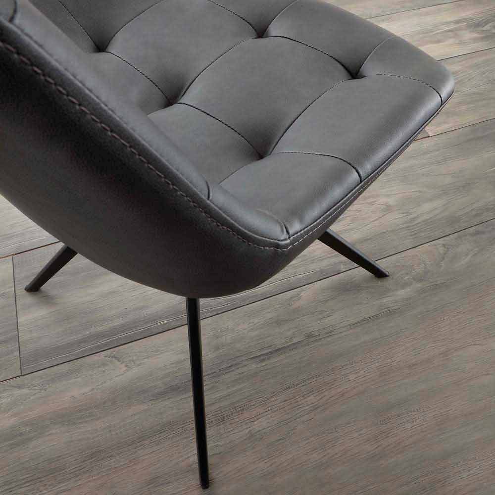 Maksymalny komfort zapewniony na tym krześle, wykonanym z metalowej konstrukcji malowanej na czarno i tapicerowanym siedziskiem z tkaniny lub z eko-nubuku, dostępnym w czterech różnych kolorach: