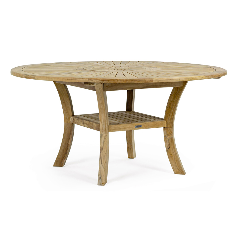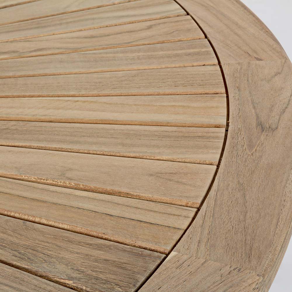 Wysokiej jakości stół ogrodowy z drewna tekowego z centralnym obrotowym blatem.
