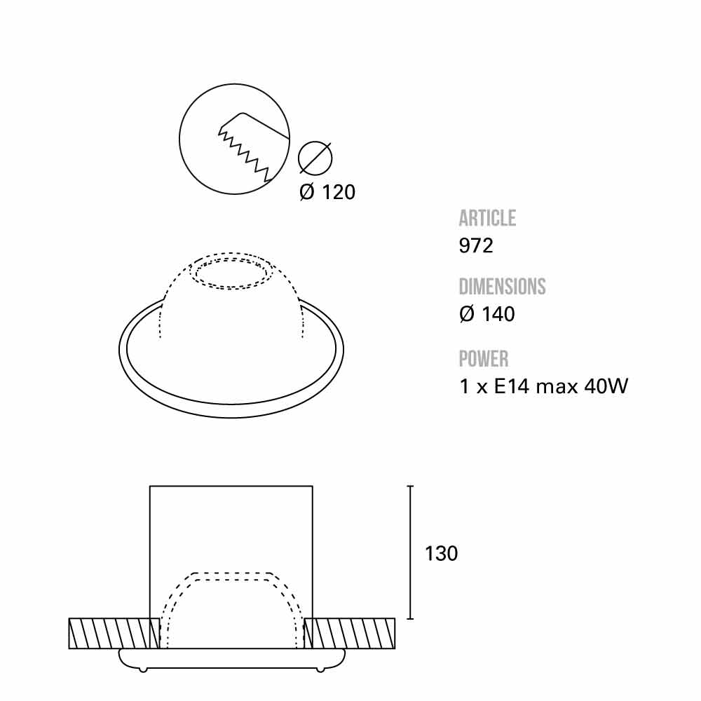 Wymiary : Ø14, otwór 12 cm