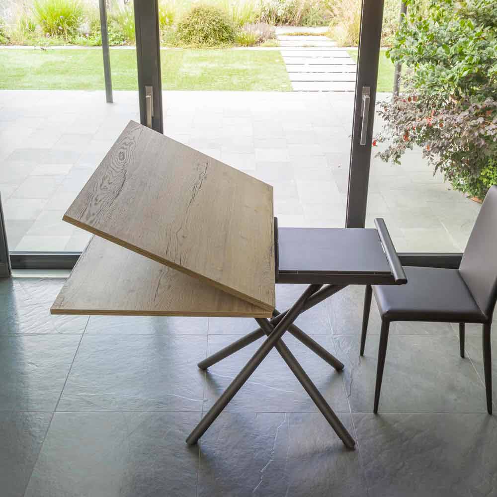 Rozkładany stolik kawowy z metalu i drewna wyprodukowany we Włoszech.