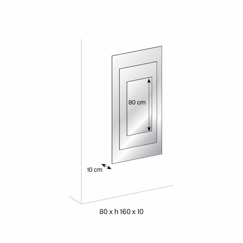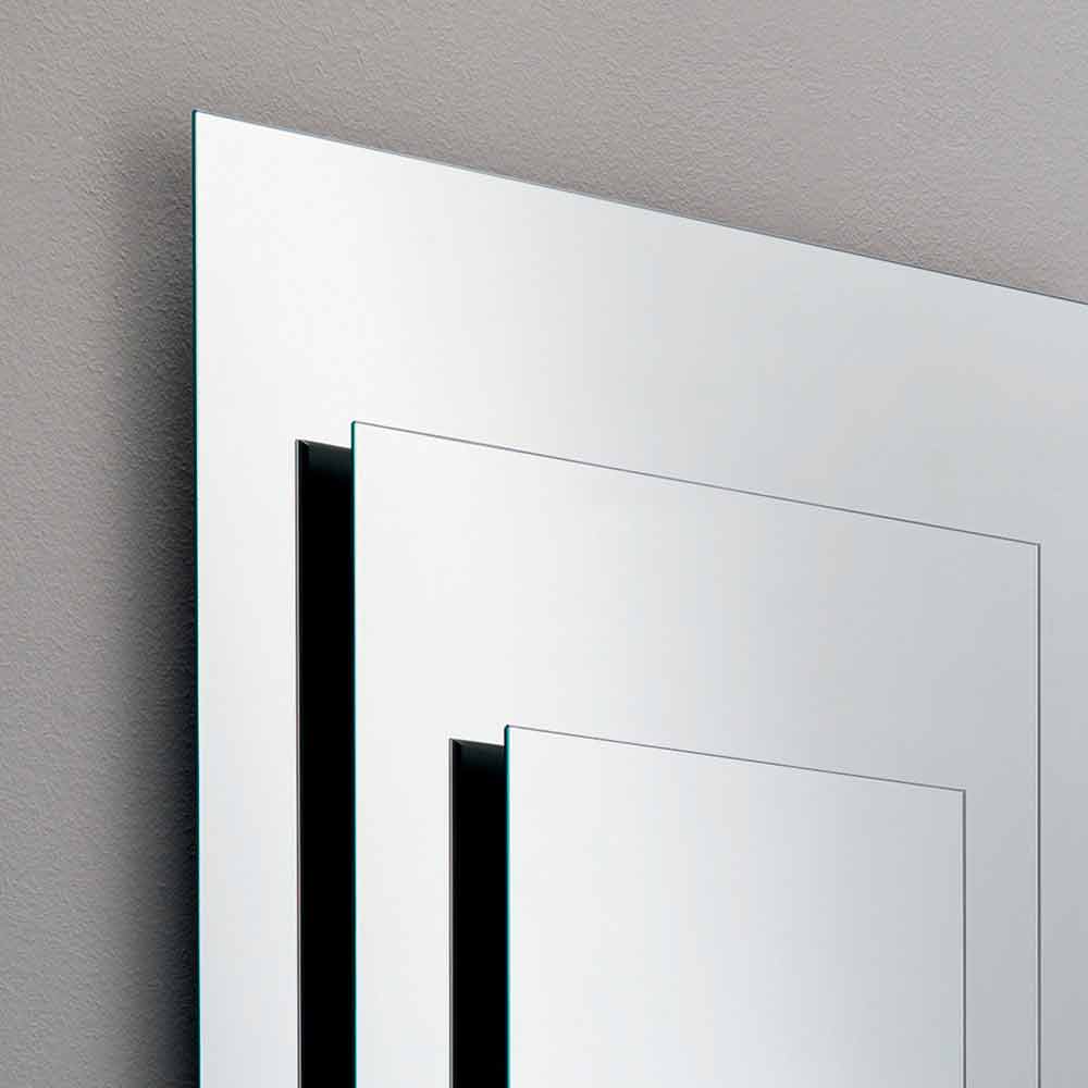To lustro ścienne składa się z trzech zachodzących na siebie i oddalonych od siebie płyt wspartych na czarnej drewnianej konstrukcji .