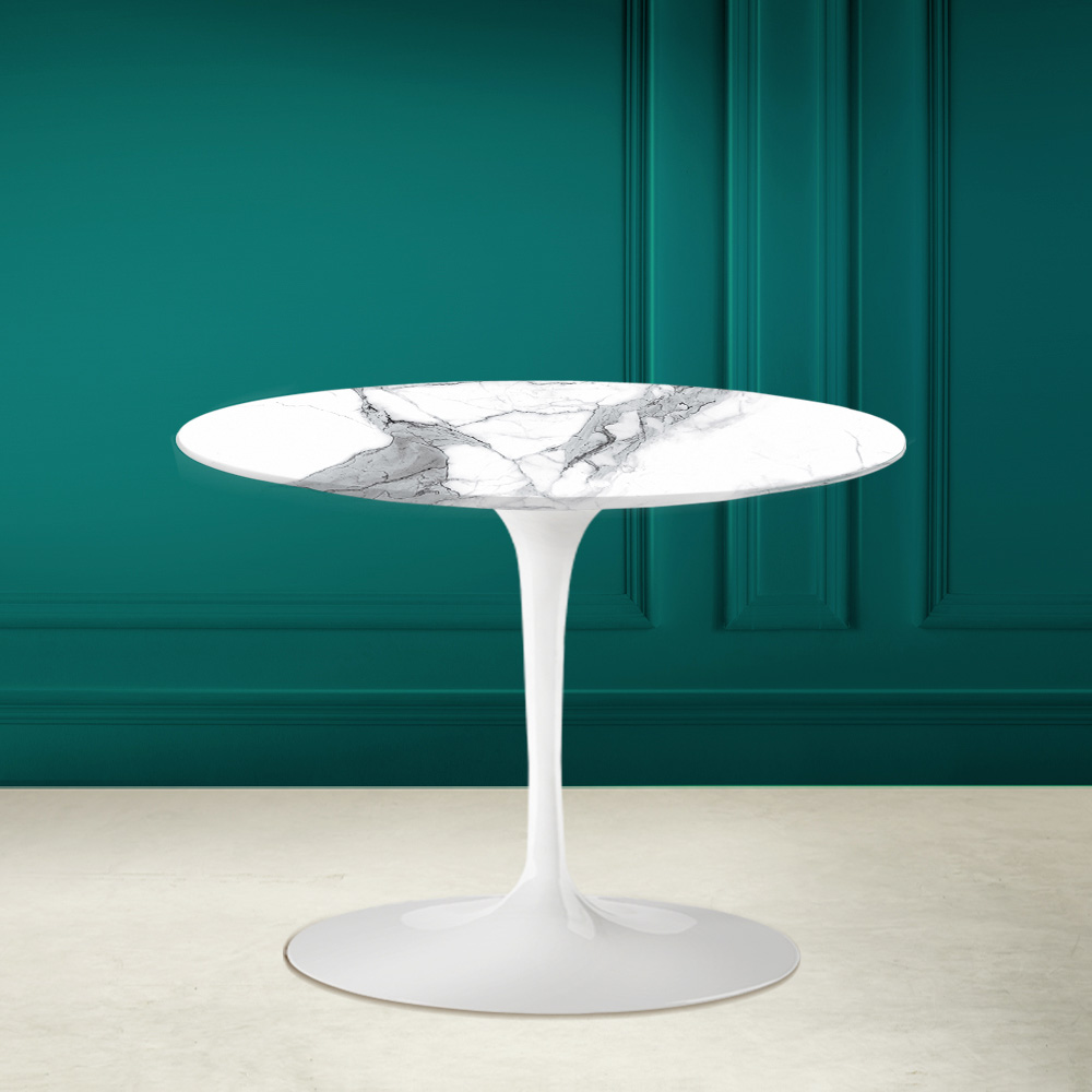Bardzo wysoki, okrągły stolik kawowy z ceramiki Statuario Wyprodukowano we Włoszech