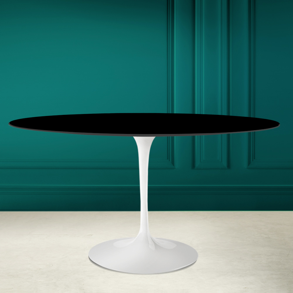 wyprodukowaną we Włoszech. Ten stół ma dwie cechy, które czynią go wyjątkowym w swoim rodzaju: owalny kształt i absolutnie czarną ceramikę.